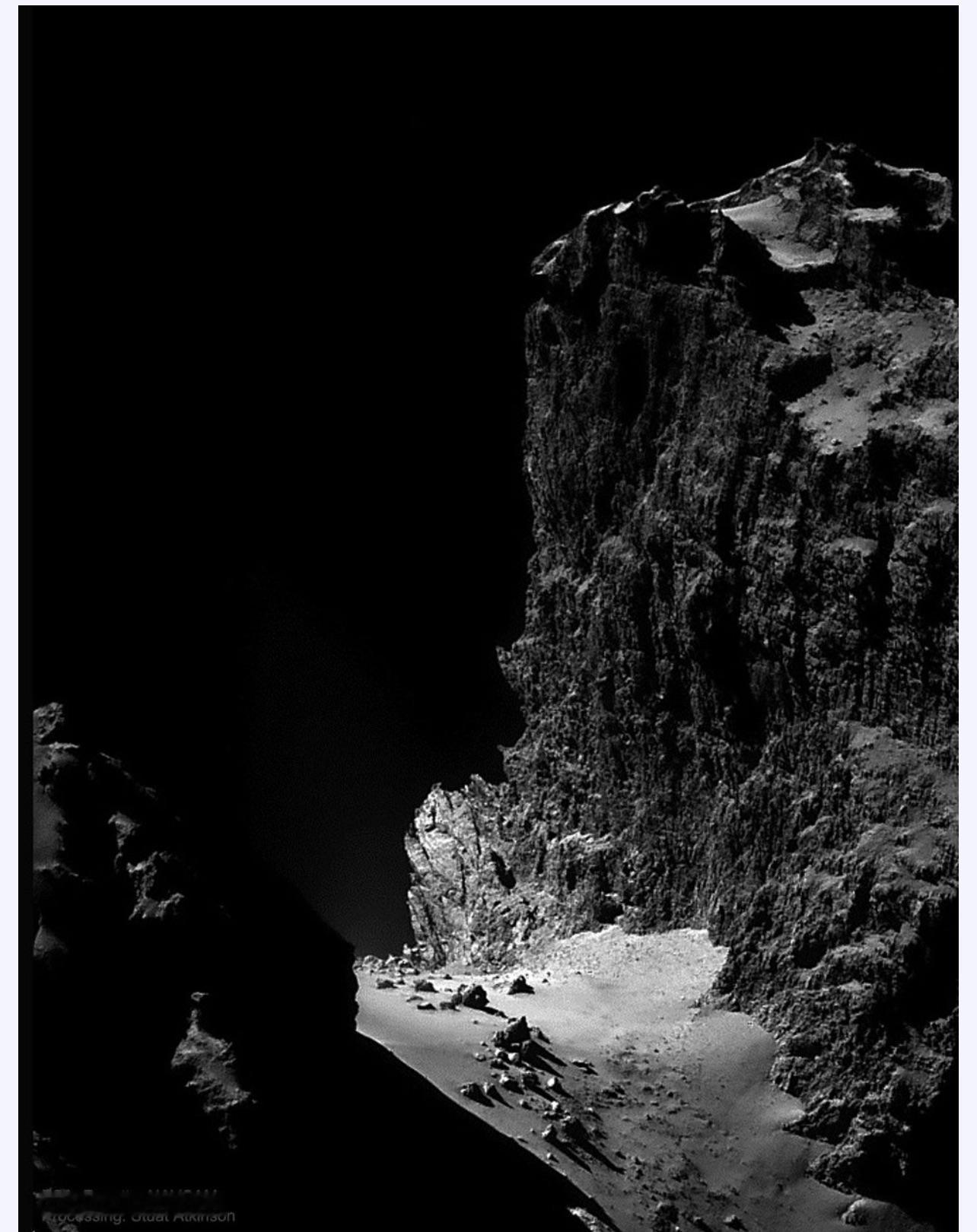 这是悬崖。它高达1000米。它在一颗彗星上。距离我们996,480,038公里。