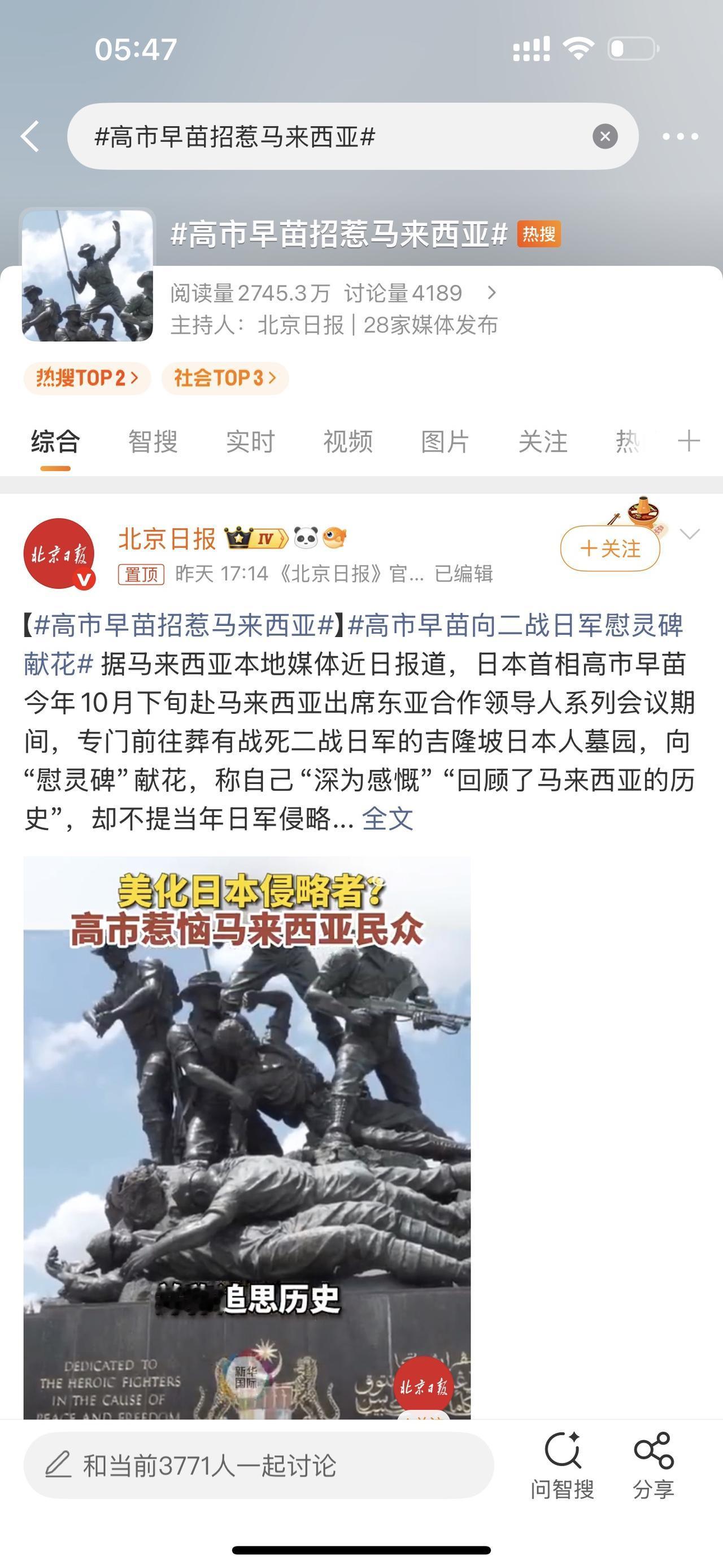 所以我实在不太理解,马来西亚为何要给那些曾侵略过它的日本人立碑建墓园?!高市早苗更是毫无顾忌,她对自己国家的墓园参拜时都不见得如此积极虔诚,却跑到人家马来西亚去,而且还是去开会,那么忙碌还特意抽空去参拜,这不是故意的又是什么?!有点意思![灵光一闪][灵光一闪][灵光一闪][灵光一闪]