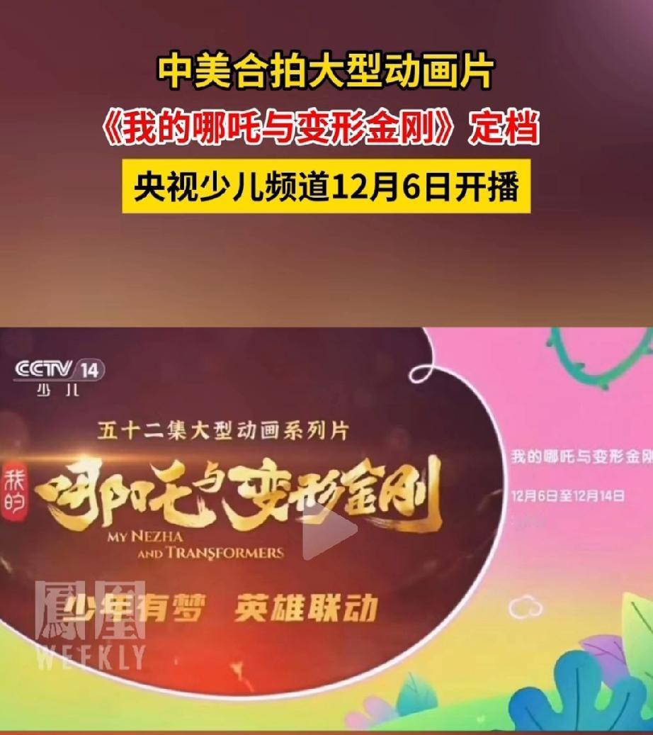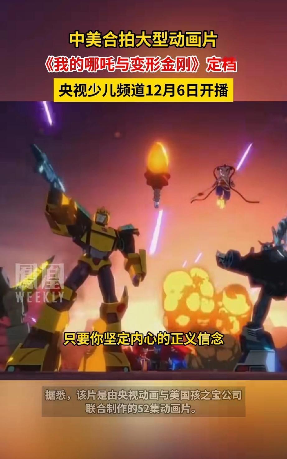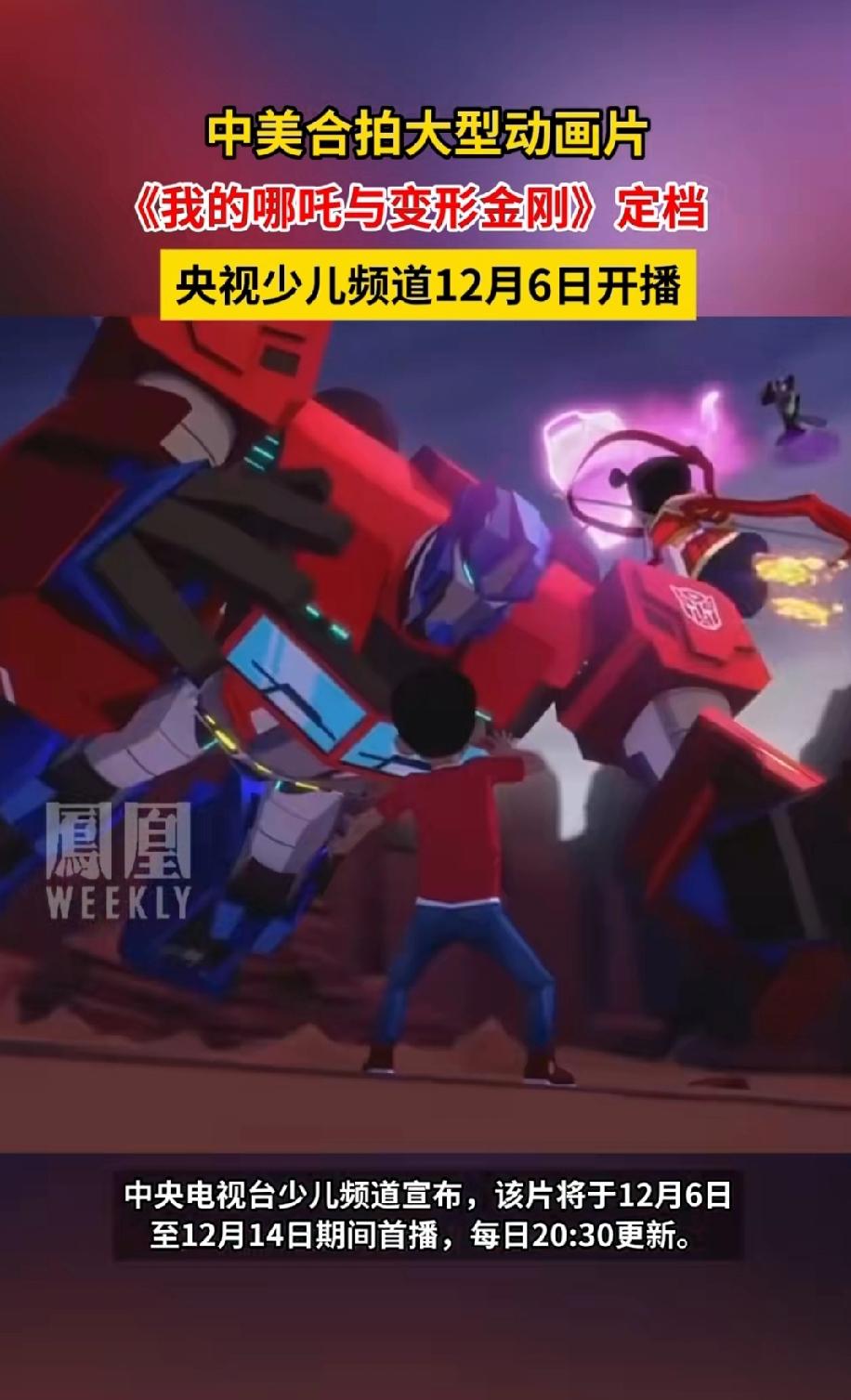 中美合拍的大型动画片《我的哪吒与变形金刚》将于12月6号在央视少儿频道开播。哪吒恐怕不需要踩风火轮了,直接骑变形金刚就可以了。 什么时候合拍一部葫芦娃和复仇者联盟。[泪奔]