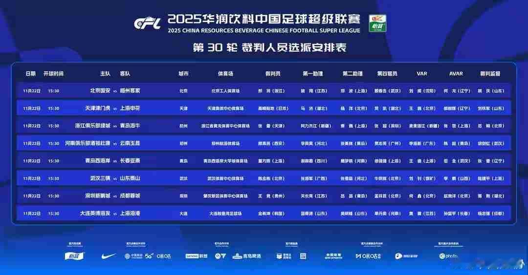 中超最后一轮裁判选派:两场争冠大战使用外籍裁判,保级隔空对决却有本土判官主哨!