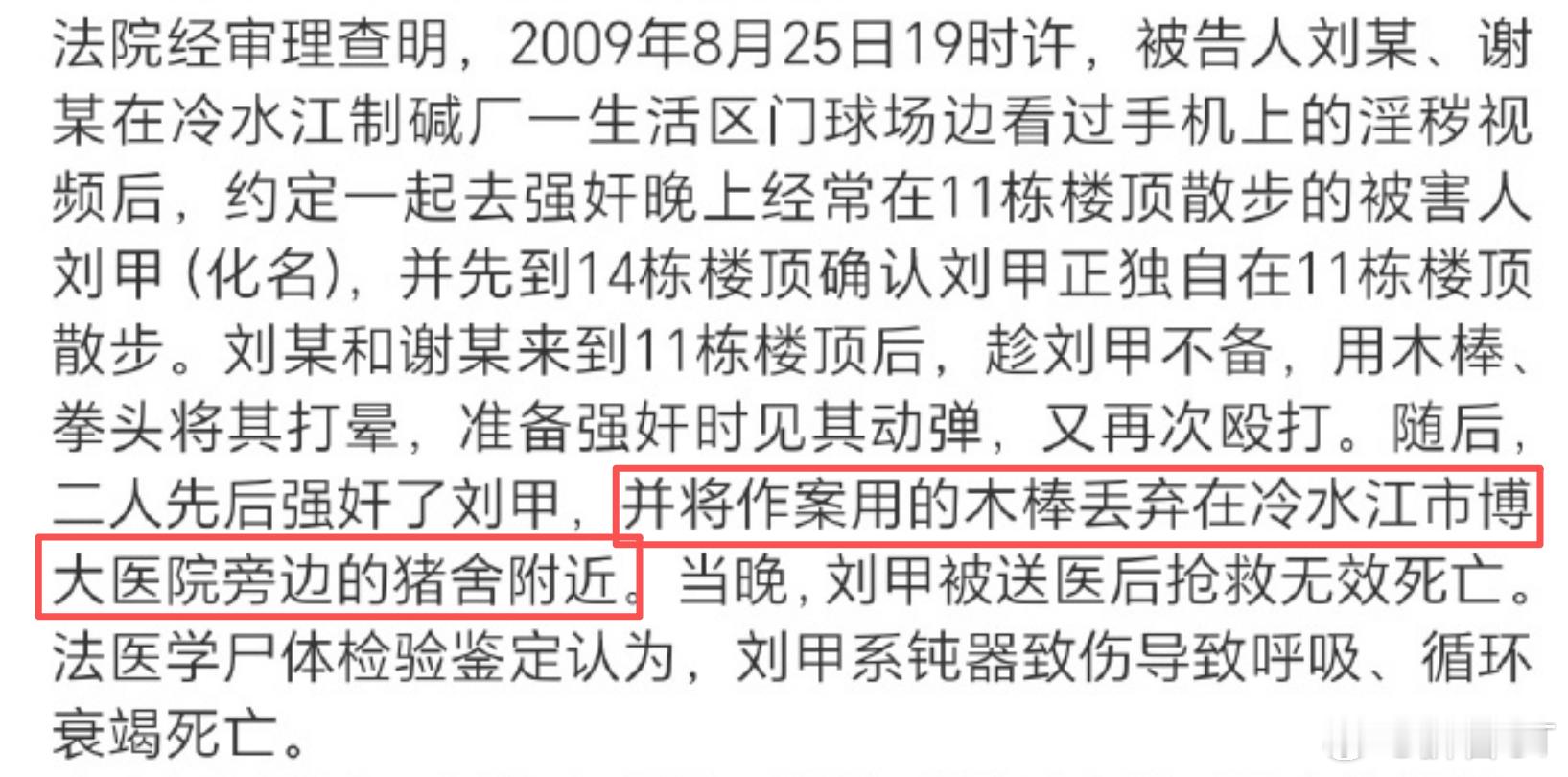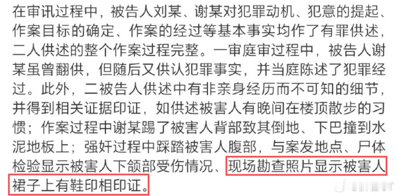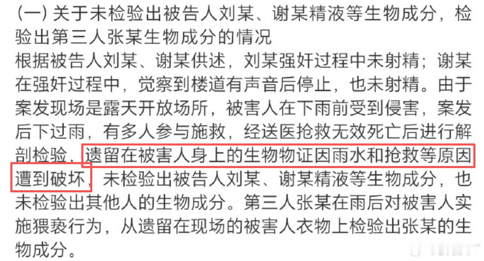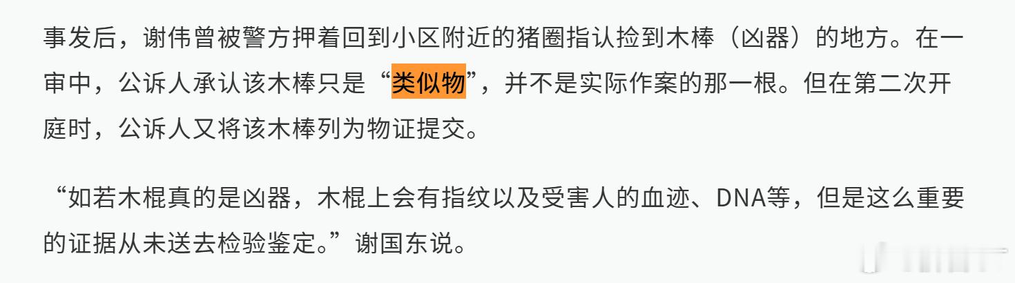 关于“冷水江女老师被奸杀”案,我再多嘴问一句。通报说,抢救和下雨破坏了两被告的生物成分。如果属实,那为什么下雨没有破坏两被告遗留在被害人裙子上的鞋印,抢救没破坏第三人的生物成分?通报还说,两被告击杀被害人后,将作案用的木棍丢弃在博大医院旁边的猪舍附近。那两被告的作案工具,到底是确实找到了,还是只找到了类似物?如果是确实找到,警方做相对应的检测了吗?假如没做,是因为这上面的生物信息也被雨水冲刷干净了吗?