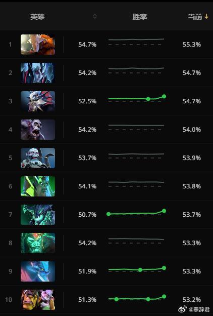 我看数据网站,最近8天的数据,剑圣在全分段胜率登顶第一了,55.3%!可以说很高了,上次剑圣胜率第一还是二人转时期吧,现在的剑圣狂战分身蝴蝶A杖,输出挺廉价的,而且有奶棒,团战还是蛮厉害的,胜率第二是VS,第三居然是大鱼人!