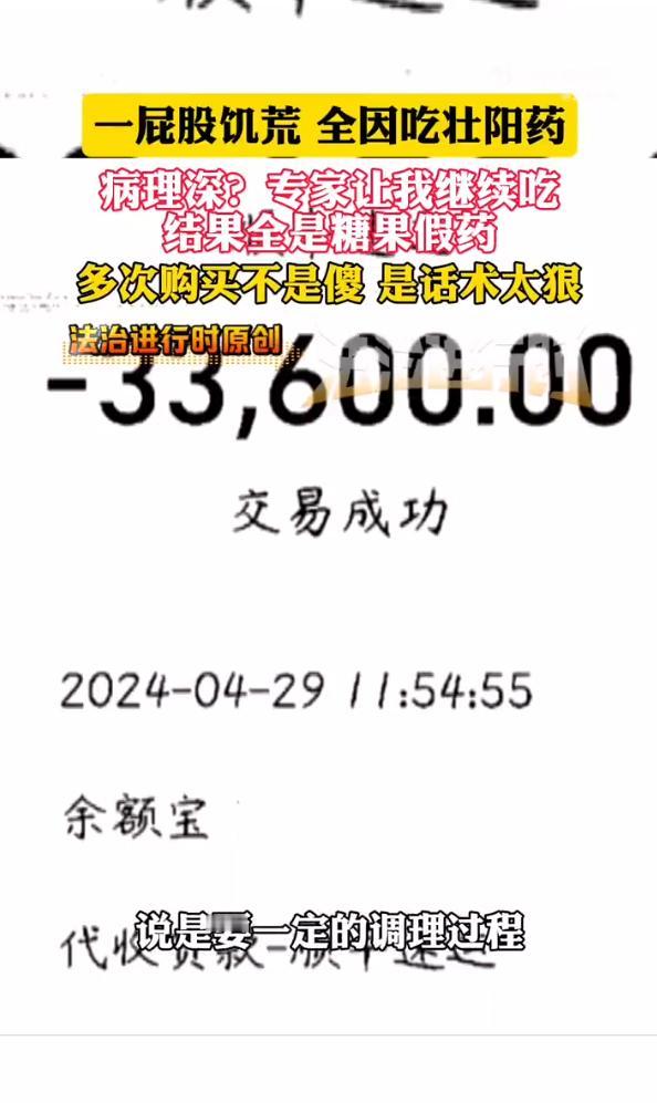 扎心了!一男子因为难言之隐,多次购买壮阳药吃,可吃了很久不但身体没改善,自己还欠了一屁股饥荒,发现被骗后选择报警,他表示自己多次购买不是因为傻,而是对方的话术太深了!网友:确实病得不轻。 2025年11月,警方接到一起特殊的报警,报警人杨某脸上满是懊悔,说自己不光身体的毛病没治好,还欠了一屁股饥荒。   这话里的“饥荒”不是真的没饭吃,是他为了买所谓的“壮阳药”,把积蓄花光还借了钱,最后才发现买的全是糖果做的假药。   杨某的难言之隐已经困扰他好几年了,因为这事,他在人跟前总抬不起头,跟朋友聚会都不敢多喝酒,怕一喝醉了说漏嘴被别人耻笑。   为了改变现状,他没少下功夫,先是悄悄去小区门口的药店问,柜员推荐的几盒药吃了没效果。   后来又托亲戚找了民间偏方,熬出来的汤药又苦又涩,喝了一个月也没见好转。   甚至偷偷关注了好几个健康类的公众号,照着上面的食疗方天天炖汤,折腾了大半年,还是老样子。   就在他快要绝望的时候,在一个匿名健康交流群里,有人主动加了他好友,自称是“中医世家传人”李专家。   对方一上来就说,看他群里的发言,就知道是“顽疾缠身”,还说自己最擅长调理这种私密问题。杨某一开始还有点警惕,没敢多说。   接下来的几天,李专家每天都给杨某发消息,不时分享“康复案例”,说某某客户吃了他的药半个月就见效,还附了聊天记录截图。   就是讲自己的“行医经历”,说跟着爷爷出诊时,治好了多少类似的病人。   更让杨某动心的是,李专家说他的药是“纯中药提炼,没有副作用,根治不复发”,还承诺无效全额退款。   杨某彻底被说动了,当即花两千块买了一个疗程的药,收到货后,他按要求每天服用,可一个疗程吃完,身体压根没变化。   他去找李专家,对方没慌,反而说:“我早说过你这是病理根深,得按疗程调理,那些好得快的,都是症状轻的。”   接着又推荐了“加强版”的药,说这个疗程肯定见效,还能打个八折。   杨某心里犯嘀咕,但想想之前花的钱,又抱着“再试一次说不定就好了”的念头,又掏了三千块。   可这次吃完,还是没任何改善,李专家又说要换“定制配方”,价格更贵。   杨某这时候已经有点骑虎难下,他太想摆脱这个困扰了,就咬牙借了钱买了配方。   就这样,从两千块的基础版到五千块的定制版,杨某前前后后买了六次药,花光了五万多积蓄,还欠了亲戚朋友一万多。   直到有一次亲戚逼问他到底什么病这么花钱,他才难为情地说了出来。   亲戚听了之后直接带着杨某,拿了几片药去医院化验,结果出来后傻眼了,所谓的“神药”根本不含任何药用成分,就是普通的硬糖压制成型。   杨某这才幡然悔悟,自己是被那些“康复案例”和“专家身份”骗了。   他说,不是自己傻,是对方太懂他的心思了,知道他急着改变,又不敢跟别人说,才一步步掉进陷阱里。   像杨某这样的情况真不少见,生活里,总有一些人抱着“偏方治大病”的想法,尤其是遇到私密健康问题时,觉得去医院丢人,就偷偷相信网上的“专家”和“神药”。   这些骗子也正是抓住了这种心理,编造假身份、假案例,用“无效退款”“根治不复发”的话术诱骗受害者。   他们卖的东西要么是没效果的糖果、保健品,要么是添加了违禁成分的假药,不仅骗钱,还可能伤身体。   说到底,身体出了问题,哪怕是难言之隐,也得找对地方。   正规医院的医生都有专业资质,会根据具体情况诊断,给出科学的治疗方案,根本不会像网上的“专家”那样夸海口。   像杨某要是一开始就去医院,也不会既花冤枉钱又欠外债了。   现在杨某已经报警,警方也在追查那个“李专家”的下落。   希望他的经历能提醒更多人,遇到健康问题别乱投医,那些号称“神药”的东西,大多都是骗人的幌子。
