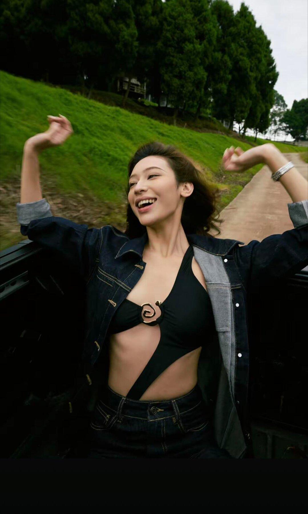 这件衣服有一点赘肉都驾驭不了,张天爱瘦成这样都一直在吸腹