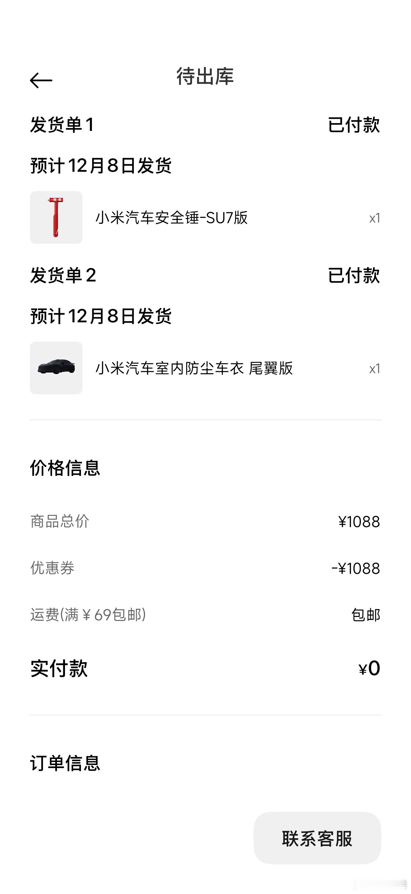 收到小米SU7Ultra车主关怀礼了……还送了个锤子和防尘车衣