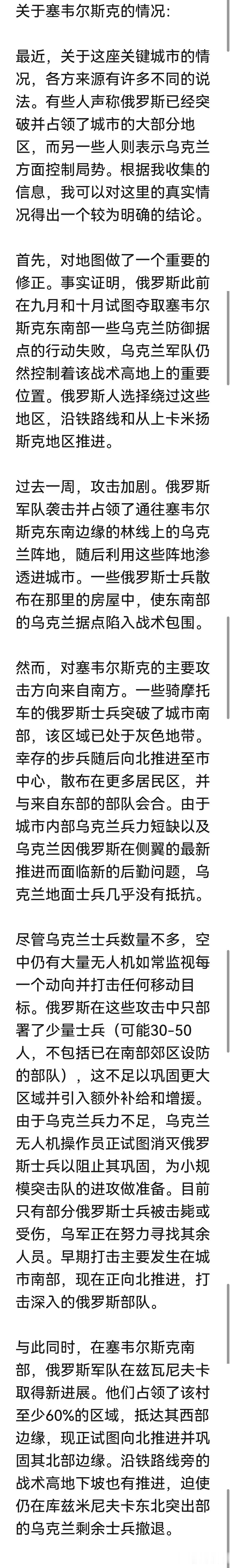 11月22日新西兰信源“AMK_Mapping”报告了塞弗尔斯克及其方向前线的战况。 美拟复刻加沙停战模式解决俄乌冲突 美新版俄乌和平方案对乌克兰有何影响 美俄草拟的和平方案对欧洲局势有何影响 如何看待美国就和平协议对乌克兰施压