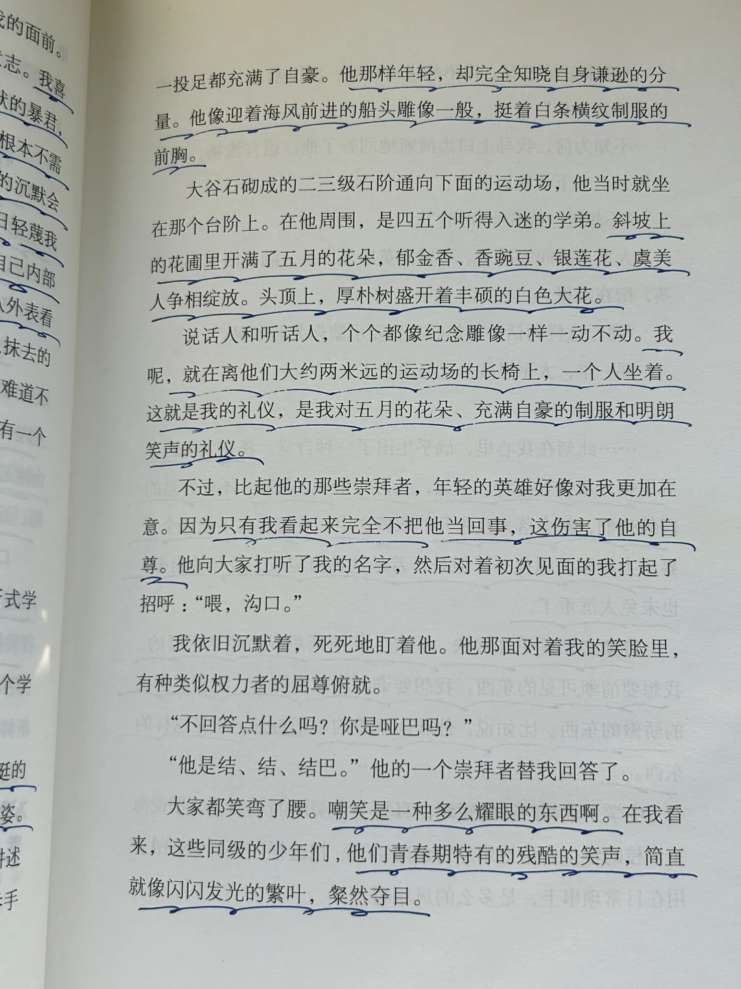 孤独疯狂地长大,就像猪一样。书中的主人公在自己的口吃中自卑成长,经常被同学嘲笑,他说嘲笑是一种多么耀眼的东西啊。他们青春期特有的笑声,简直就像闪闪发光的繁叶,粲然夺目。
