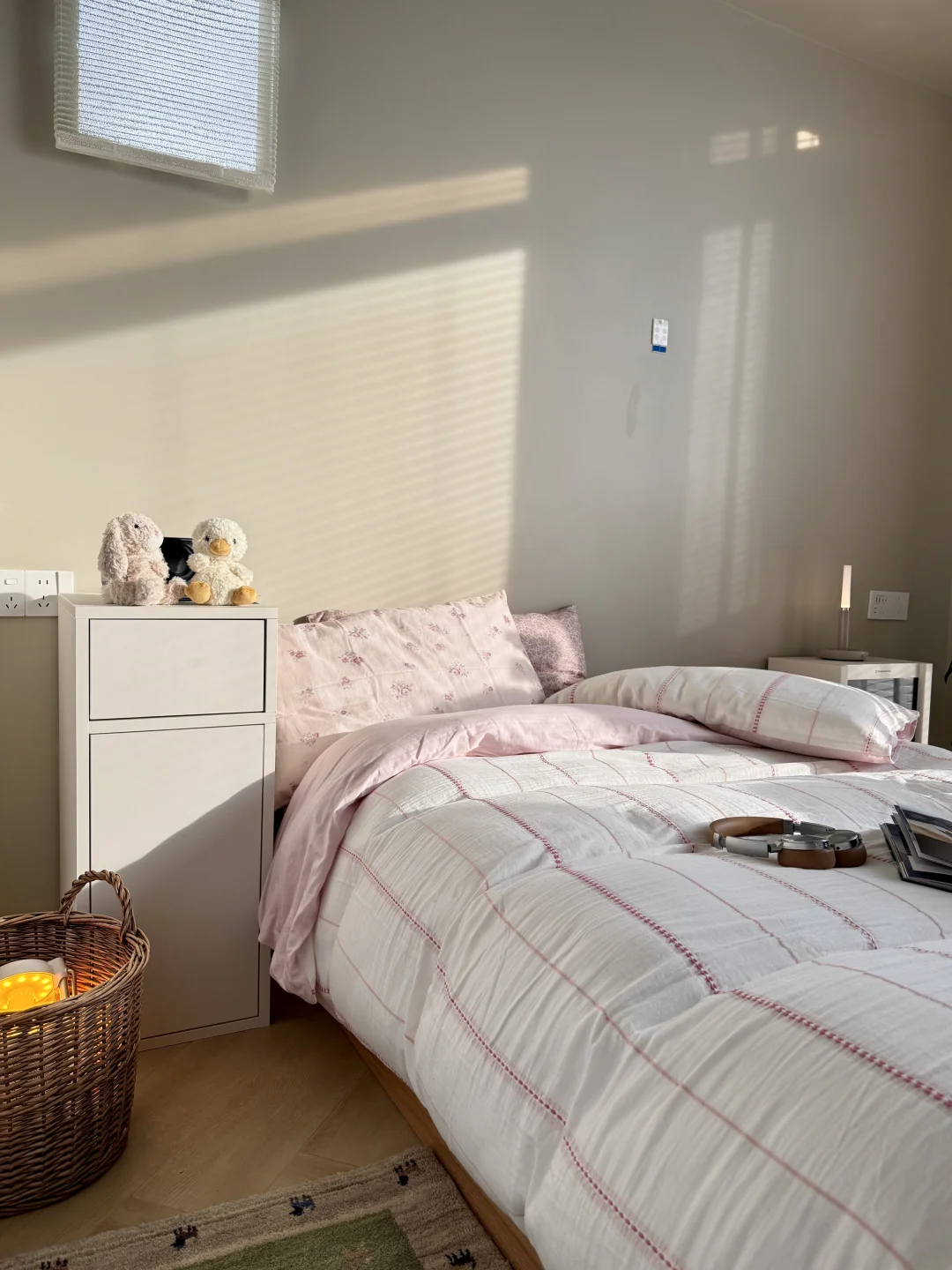 hi,这是椰的小家 前段时间改造了客厅 新增了一个5平米左右的小卧室 卧室虽小但五脏俱全 一直在纠结要不要装门呢~