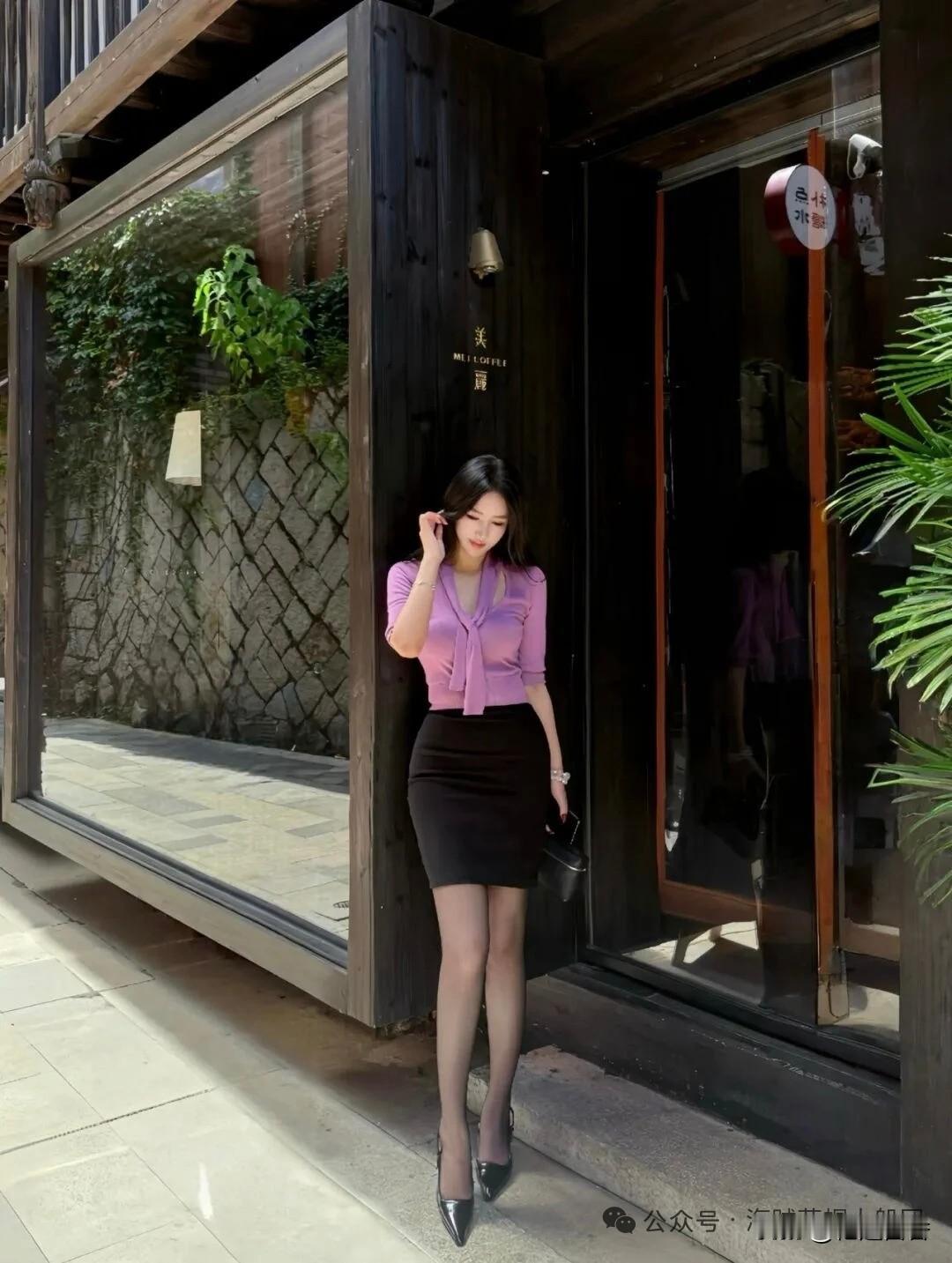 优雅紫调穿搭,咖啡馆里的时尚气息