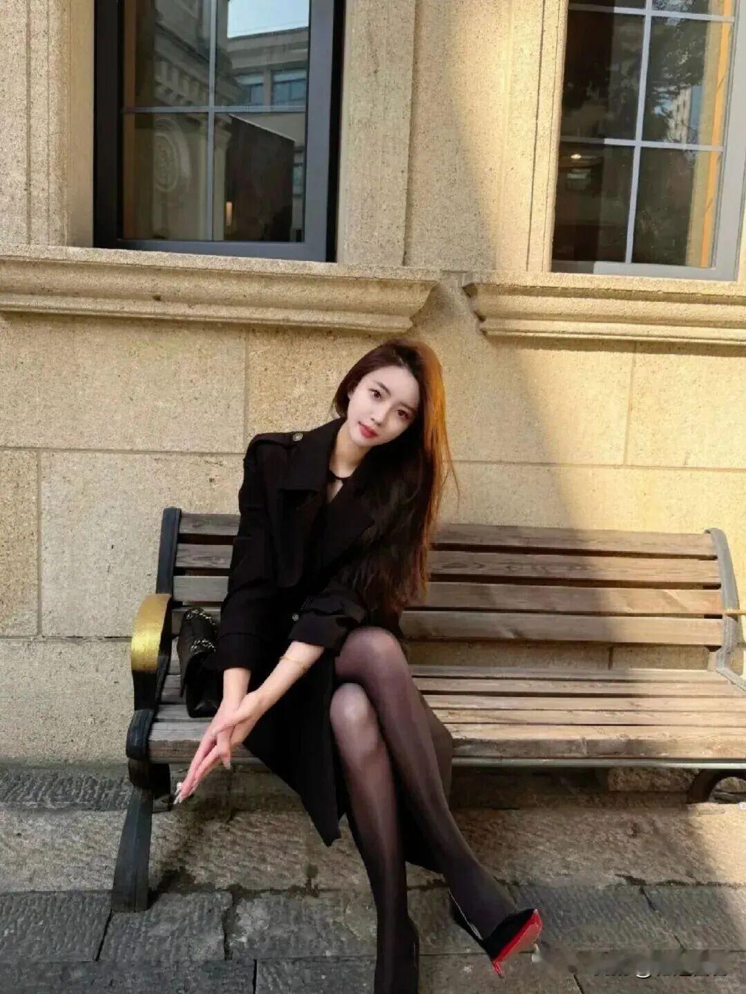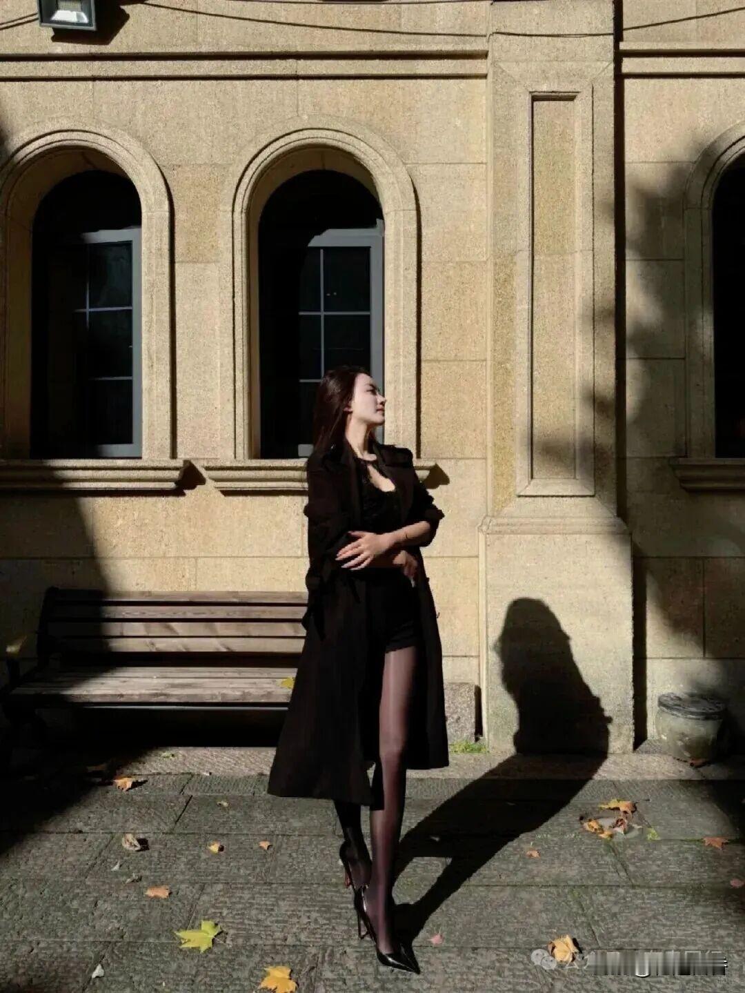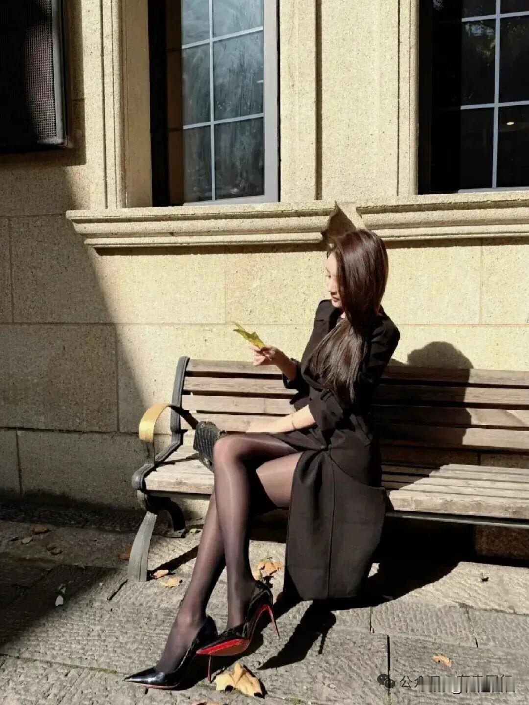 优雅黑裙,高跟鞋,享受阳光下的美好时光。