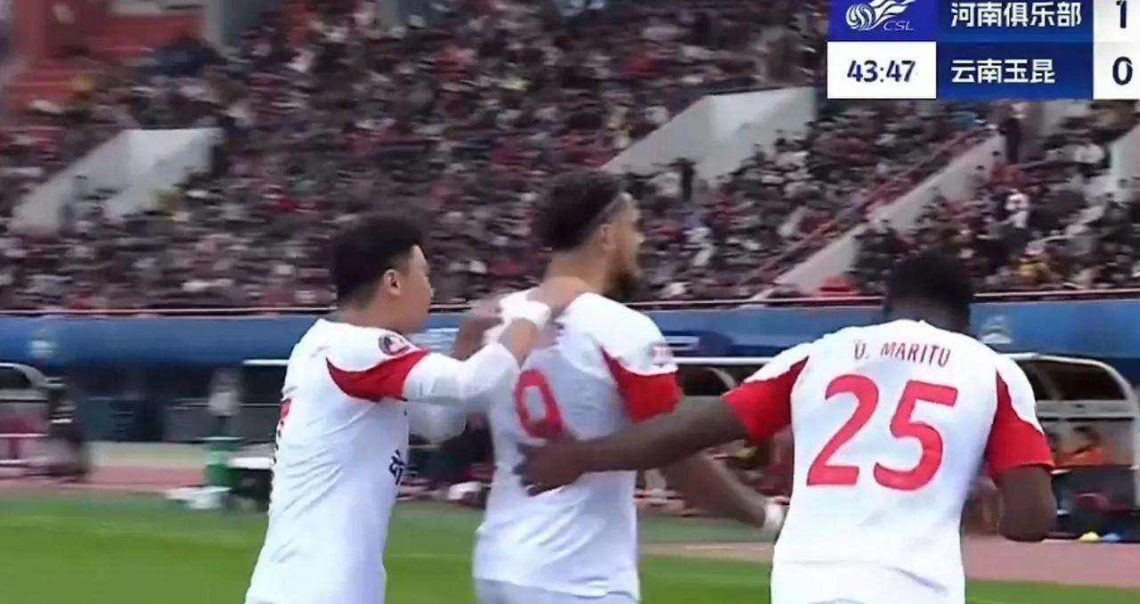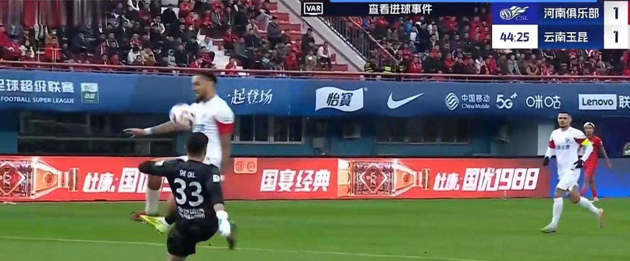 河南队守门员45分钟送大礼,河南队后卫回传守门员,守门员停球停大了,恩里克抢断守门员打空门扳平比分,上半场结束,河南队1比1云南玉昆,双方握手言和。 河南队今天开场攻势很猛,才15分钟就由队长王上源助攻阿奇姆彭首开纪录,河南队1比0领先,想不到上半场最后一分钟守门员失误送大礼,云南玉昆1比1扳平比分。希望双方下半场为球迷奉献精彩的进球大战,双方一起加油!