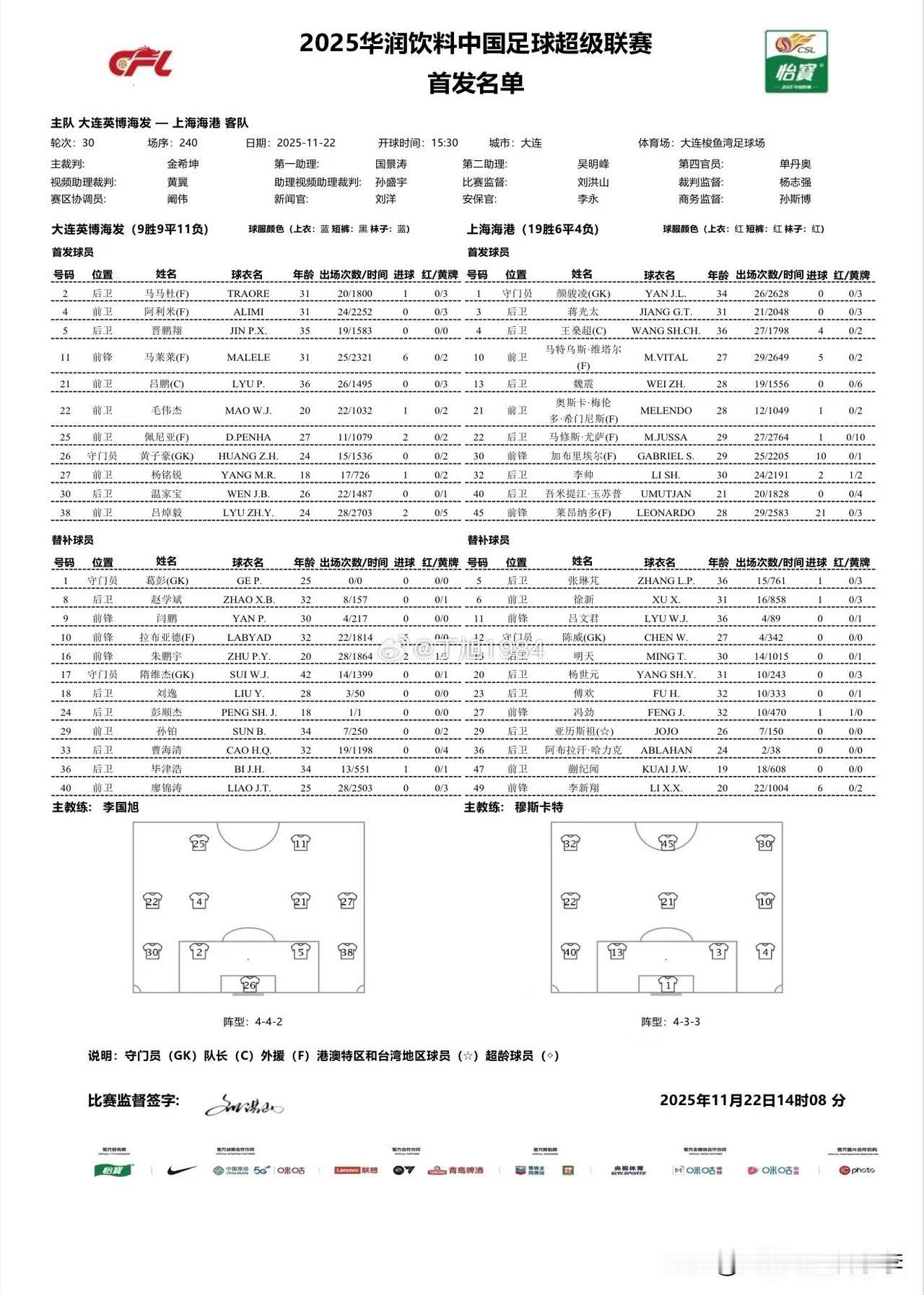 大连英博vs上海海港首发,四外援PK五外援! 中超联赛最后一轮,大连英博队主场对阵联赛领头羊上港海港队,这是一场很可能左右冠军的比赛,大连英博队也派出了除了伤病之外的最强阵容,马莱莱回归,拉布亚德替补。 宋岳伤病本赛季报销,晋鹏翔搭档马马杜出任中后卫,温球员和马里奥分居两侧。 中场方面,队长吕鹏搭档阿利米,两名年轻球员18岁的杨铭锐和20岁的毛伟杰在两边。锋线上马莱莱搭档佩尼亚,廖锦涛、朱鹏宇和拉布亚德替补。 根据首发阵容,小编猜测的大连英博队的阵型 ·门将:黄子豪 ·后卫:温球员、晋鹏翔、马马杜、吕焯毅 ·中场:杨铭锐、阿利米、吕鹏、毛伟杰 ·前锋:马莱莱、佩尼亚 加油大连英博! 中超