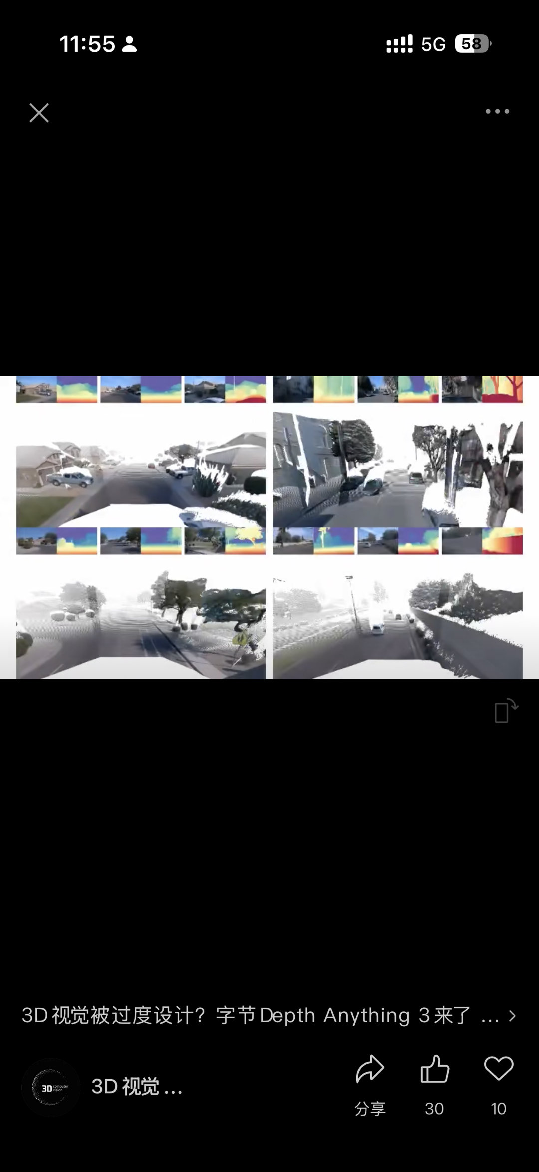【技术向】没有人会用激光雷达打游戏大家有没有发现,最近视觉相关的进展越来越快,字节前两天发布的DepthAnything V3, 靠着更纯粹的网络和海量的图片数据,一张简单的图片就能还原出来精度非常好的深度;meta 发布的Sam3, Sam3d,靠着巨量的图片数据训练,现在一张图片就能完成非常好的语义分割,3D部件构建。放到三年前是想都不敢想的事情。特斯拉和小鹏也开始用纯视觉做Robotaxi,曾经的没有激光雷达就做不了L4的论断也不攻而破。这是为什么?我常常觉得,整个人工智能的发展都是游戏和娱乐的衍生。摄像头为了电影,早期的显卡是为了游戏。游戏对渲染实时性的需求催生了显卡的蓬勃发展,对于每个像素怎么产生,如何保存,怎么接近人的观感,行业付出非常多。到现在,我们发现其实,辅助驾驶领域也需要有其他行业的数据作为基础,此时游戏的积累,电影电视的积累再次成了驱动技术发展的数据。相较于如此海量的数据,激光雷达的积累只来自近几年,而且数据一般在团队内部积累。视觉相当于全世界都在帮助收集数据,而激光雷达只能靠自己的团队。所以我们能看到纯视觉的辅助驾驶系统,一定不会看到纯激光雷达的辅助驾驶系统。因为没有人会用激光雷达打游戏。 况且,10HZ 每秒的游戏,没有人会愿意玩的。