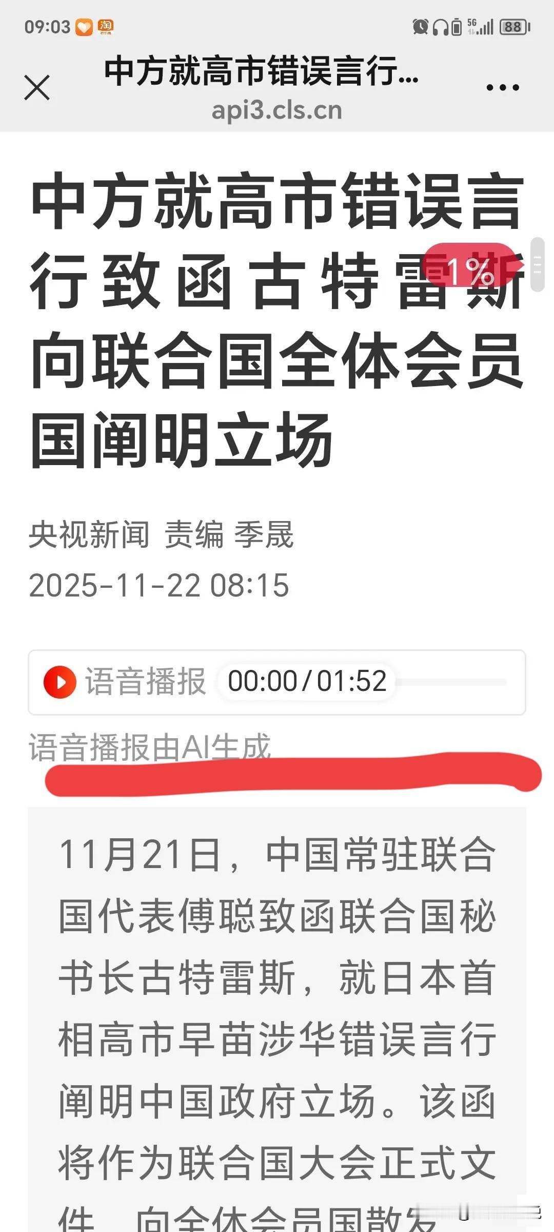 高市早苗还是低估了中国的坚决。既然中国已经公示到联合国,向各国正式表明中国的立场。那日本接下来就要承接来自中国的怒火! 这一举动被广泛视为对高市早苗近期涉台挑衅言论的强力回应。但问题来了:面对中国的坚决态度,日本是否真的意识到自己正在玩火?而这场博弈,又会不会成为亚太秩序重塑的关键转折点? 必须看到,中国的反制早已超越口头警告。从暂停部分日本水产品进口,到文旅部门提醒游客谨慎赴日;从海警船在钓鱼岛海域常态化巡航,到军机绕台演训频率提升——每一步都精准克制,却步步为营。这不是情绪化反应,而是系统性战略应对。 有网友说得直白:“现在不是谁嗓门大谁赢,而是谁底牌稳、后手足。”确实,中国近年来在关键领域持续发力: 一是能源安全上,中俄东线天然气管道年输气量突破220亿立方米,大幅降低对马六甲依赖; 二是产业链韧性上,半导体国产化率三年翻倍,新能源车、光伏、电池“新三样”出口激增,减少对日技术依赖; 三是外交布局上,与东盟全面深化合作,RCEP红利持续释放,让日本在区域经济中越来越“边缘化”。 高市早苗或许以为,靠几句煽动性言论就能试探中方底线,甚至借美国撑腰博取国内政治资本。但她显然低估了一个事实:今天的中国,既有捍卫核心利益的钢铁意志,也有承受短期压力的战略定力。更关键的是,中国深知——真正的威慑,不在于一时怒吼,而在于让对手清楚:挑战底线的成本,远高于任何可能收益。 历史一再证明,地区稳定不是靠妥协换来的,而是靠实力守护的。中国坚持走和平发展道路,但和平绝不等于软弱。对那些企图借台海问题谋私利、搅乱亚太局势的势力,必须让他们明白:红线就是红线,越线必有后果。 维护国家主权和领土完整,是每个中国人的共同责任。我们既要坚定支持国家采取一切必要措施,也要保持理性冷静,避免被极端情绪裹挟。因为真正的强大,是在风浪中稳舵前行,而不是随波逐流。 世界正经历百年变局,中国的选择,不仅关乎自身命运,也影响着全球和平与发展的未来方向。 各位读者你们怎么看?欢迎在评论区讨论。