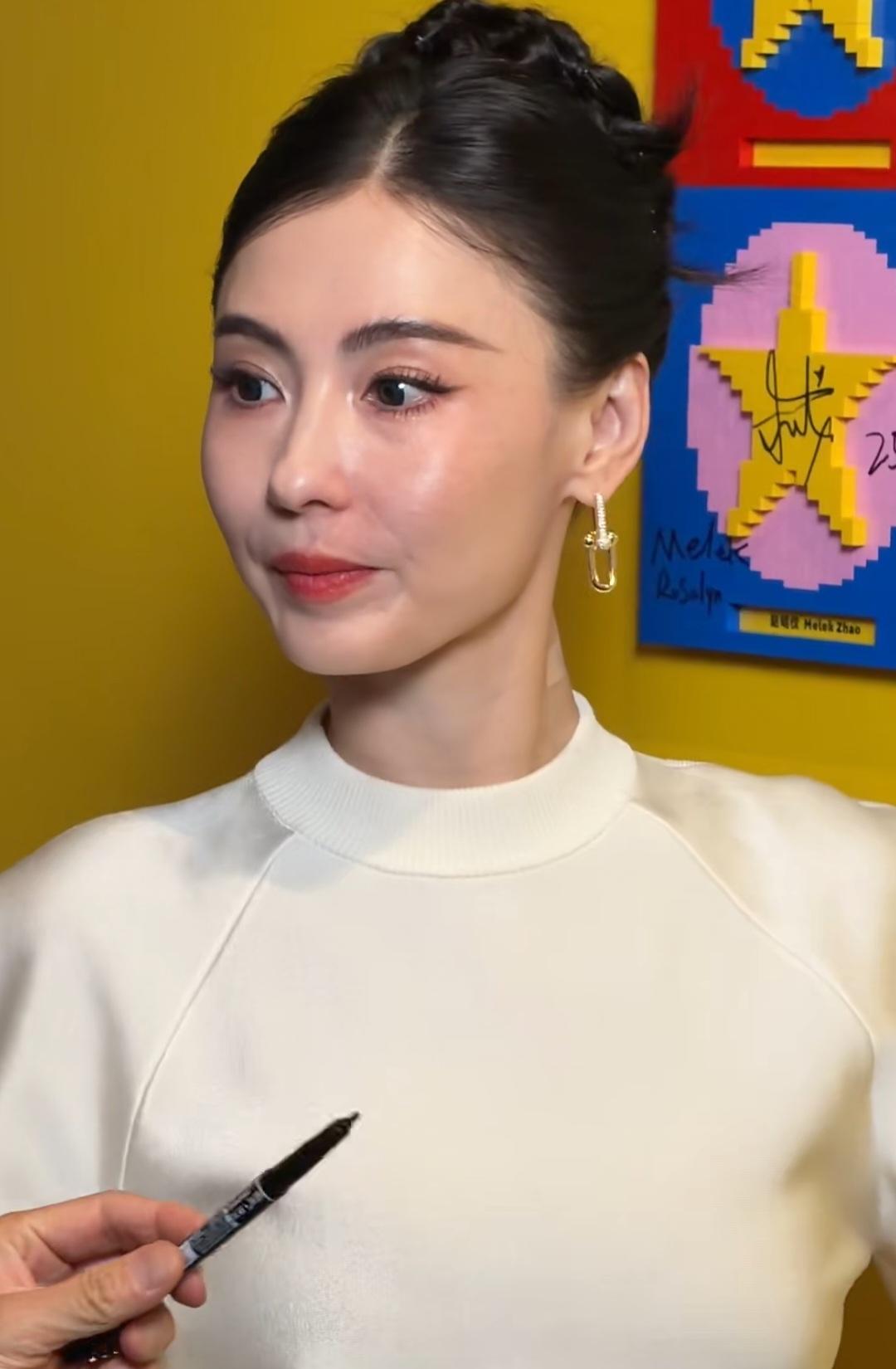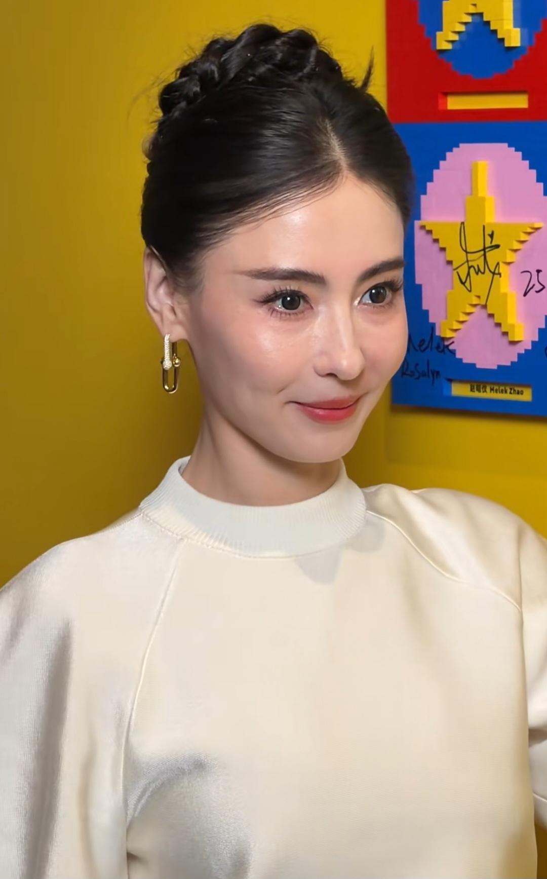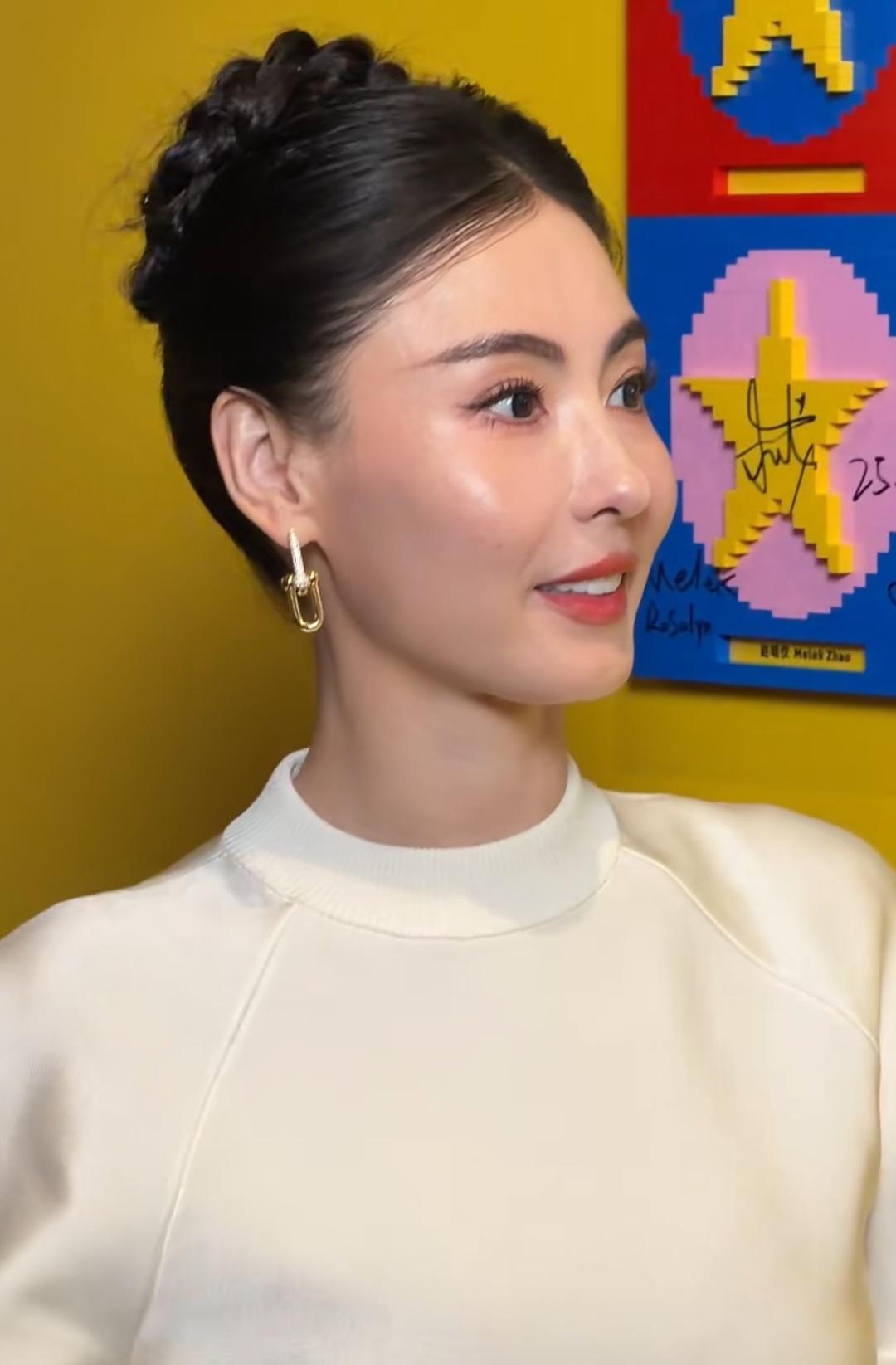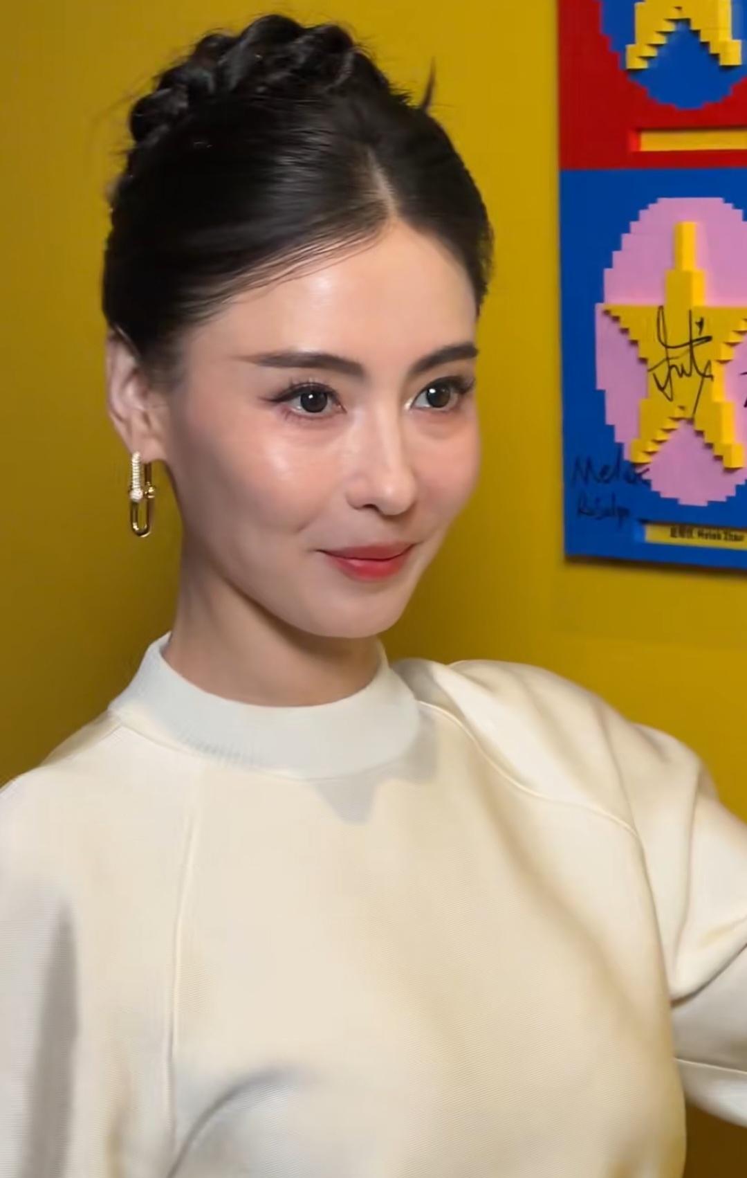 45岁的张柏芝虽然美貌仍在,但生图也开始挑角度了! 张柏芝今天一身白色卫衣,配经典赫本盘发亮相上海出席活动,她骨相好五官立体正面看特别年轻漂亮,脸型和和眉眼没啥变化跟刚出道时拍《星愿》的样子区别不大,但侧脸看苹果肌就有点儿过于突出了,尤其笑的时候看起来表情不够自然。 另外她好像做烤瓷牙了,牙太白了还有点儿厚,有点抢镜影响整体美感。