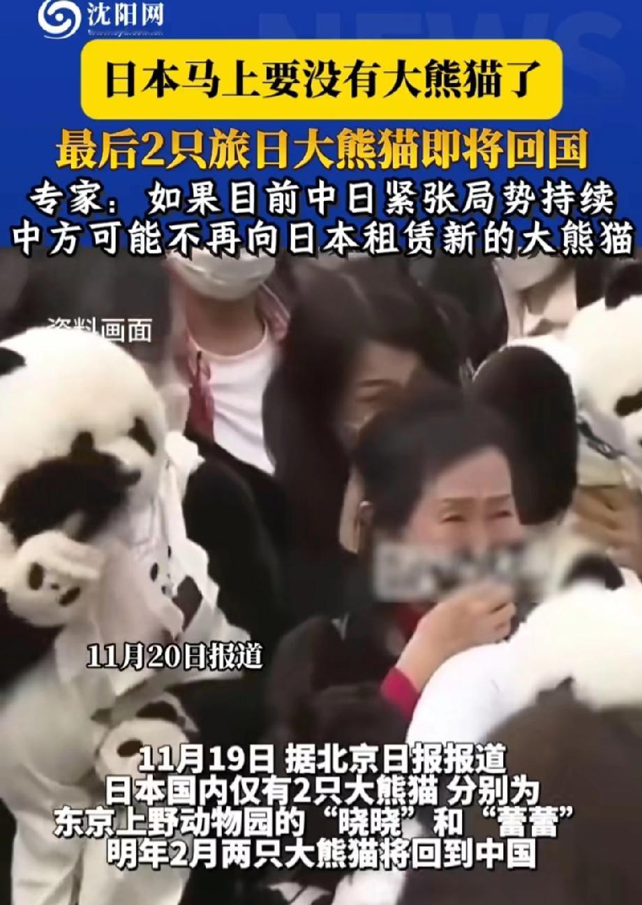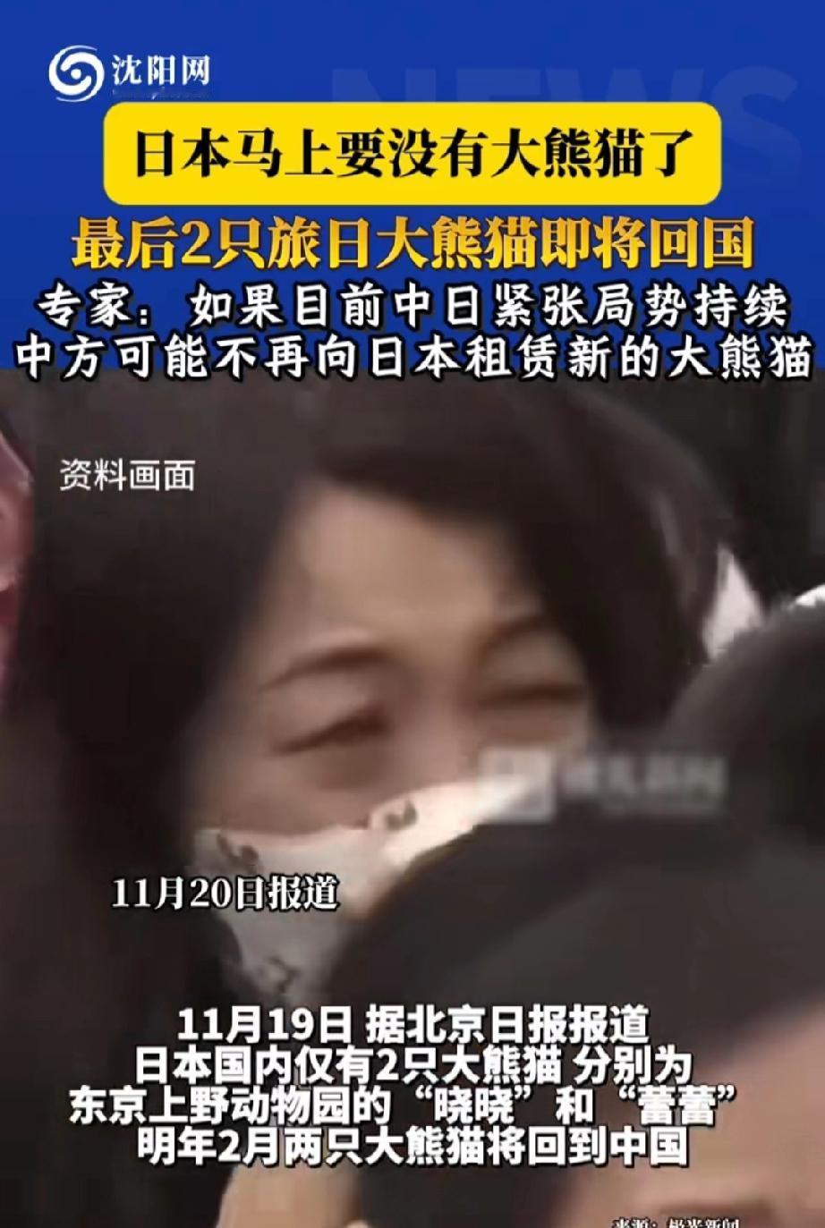 日本马上没有大熊猫了。 日本仅有的两只大熊猫,晓晓和蕾蕾将在2026年2月被中国收回。由于目前中日关系持续紧张,中国不会向日本租赁大熊猫。日本全国将会失去没有大熊猫的状况。 日本失去大熊猫,就像老鹰失去降落伞,鱼儿失去救生圈,生不如死,日本人活不下去了啊。