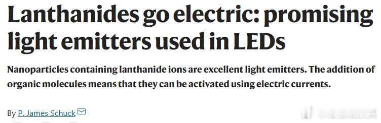 Nature刊文:镧系元素有望用于LED发光材料!近日,发表在Nature上的一项新研究显示,镧系元素的纳米颗粒是出色的发光体,有望用于LED的高效发光材料。在当今这个被电子屏幕包围的时代,无论是头顶的吊灯,还是我们时刻不离身的手机、电脑屏幕,绝大多数现代光源都依赖于发光二极管(LED)技术。LED以其高效、节能、寿命长等优点,成为照明与显示领域的核心。然而,随着科技发展不断推进,人们对LED提出了更高的要求:更鲜艳的色彩表现、更广的色域覆盖、更稳定的使用寿命,以及更简化环保的制造流程。这些挑战,在传统半导体材料的框架下,愈发难以突破。就在这样的背景下,一类特殊的材料——含有镧系离子的纳米颗粒,正悄然走进科研聚光灯下,被视为下一代高性能LED的潜力候选者。这类材料具备卓越的发光性能,是极为出色的发光体。更引人注目的是,当它们与特定有机分子结合后,能够实现电流激活发光,从而与现有LED技术相兼容。镧系元素,作为元素周期表中从镧到镱的14种金属元素的统称,拥有独特的电子结构,使其在受到激发时能够发出纯净而鲜艳的光。近来,一些科学家分别发表研究,报道了基于含镧系离子绝缘纳米颗粒构建的新型LED器件。这些研究不仅验证了该类材料在电致发光应用中的可行性,也展示出其在色彩饱和度、能效与器件稳定性方面的显著优势。相比于传统LED材料,镧系纳米颗粒发光材料具有发光谱线窄、色纯度高等特点,能够实现更宽广的色域和更真实的色彩还原,这对于高端显示技术而言至关重要。此外,该类材料在长期使用中表现出良好的化学稳定性与光稳定性,有助于延长LED器件的使用寿命。这一材料的突破,不仅为光电产业带来技术革新的可能,也让我们对未来照明与显示场景有了更多想象——更接近自然的光色、更节能环保的制造过程,以及更灵活多样的应用形态。镧系元素,这些曾经默默无闻的化学元素,正以全新的方式“点亮”我们的科技未来。