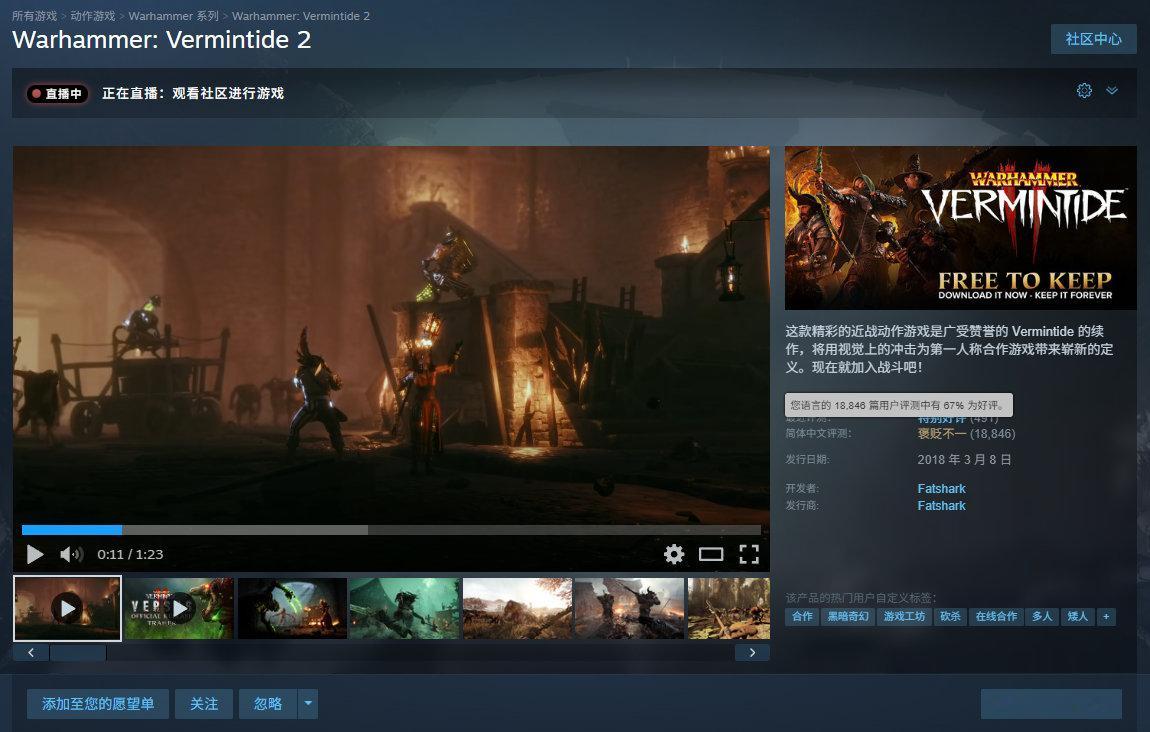 【Steam喜加一】第一人称合作游戏《战锤:鼠疫2》(Warhammer: Vermintide 2)已可在免费领取,11月24日凌晨两点截止,支持中文,目前国区好评率为67%,收录超18000篇玩家评测。五名英雄已然回归,准备抵御更大的威胁——残暴的混沌大军与蜂拥的斯卡文鼠人部落的合力进攻。准备迎接您从未面临过的挑战、让自己的队伍在无止境的杀戮中尽可能地活下来吧。