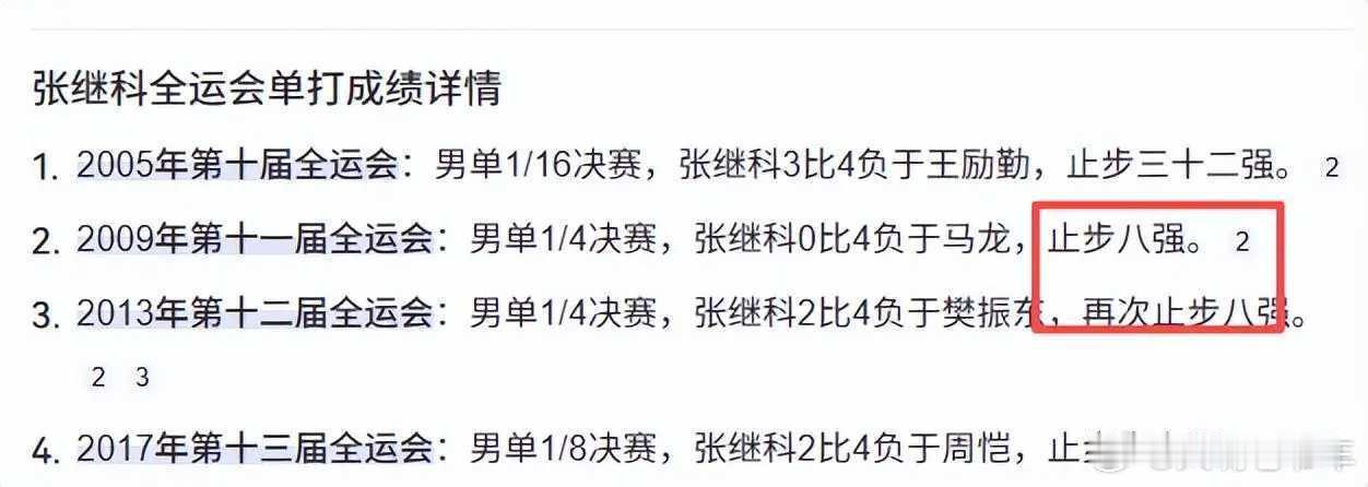 张继科,成功集齐世锦赛、奥运会、世界杯三项冠军。但唯独缺少一枚全国运动会冠军张继科,做全世界冠军,参加了四次全运会,却没有一次“拿得出手”的成绩。最好成绩仅仅只是前八这或许也会成为张继科心中永远的遗憾。同样,正是因为这四次赛事的经历。让张继科更加懂得了,樊振东此时拿到全国运动会冠军的难度。