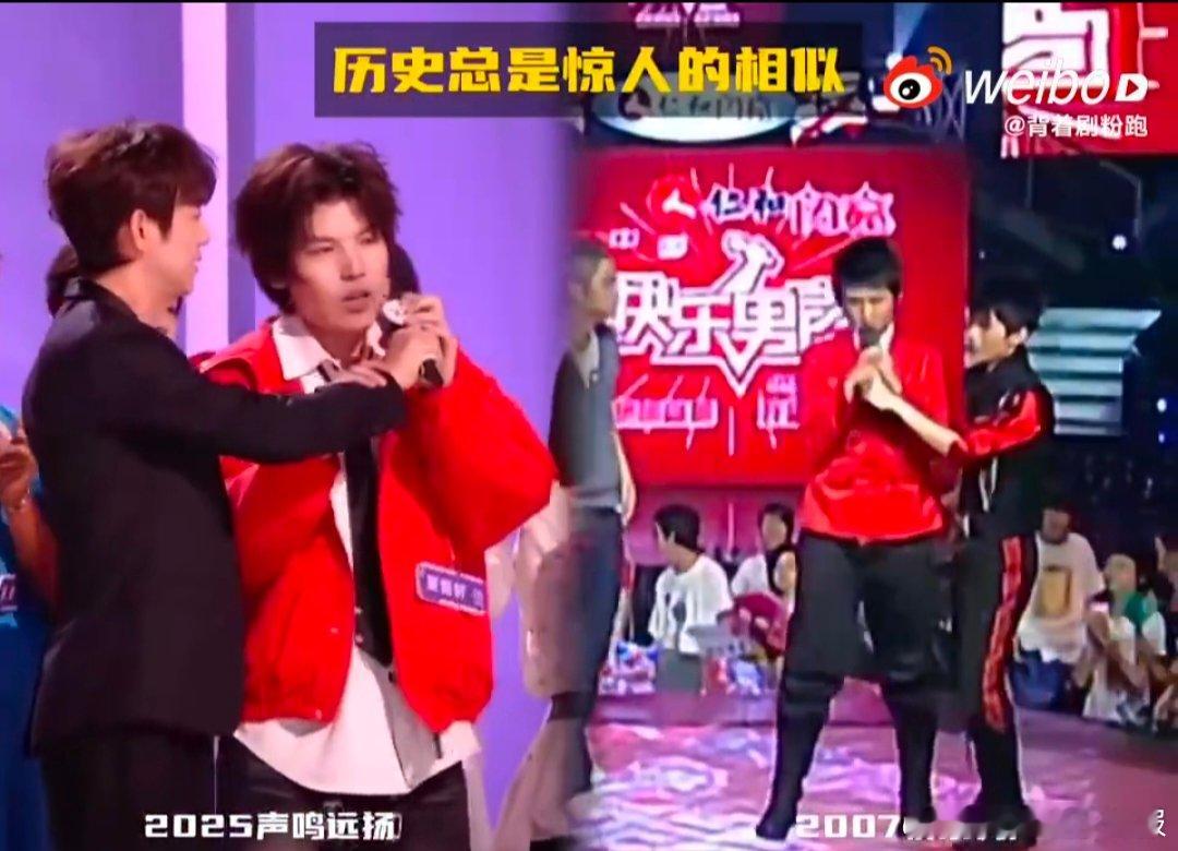 谁懂这种宿命感!夏哲轩和张远发言一字不差,红外套穿搭神契合,何炅连主持姿势都没变,这波联动太好嗑~