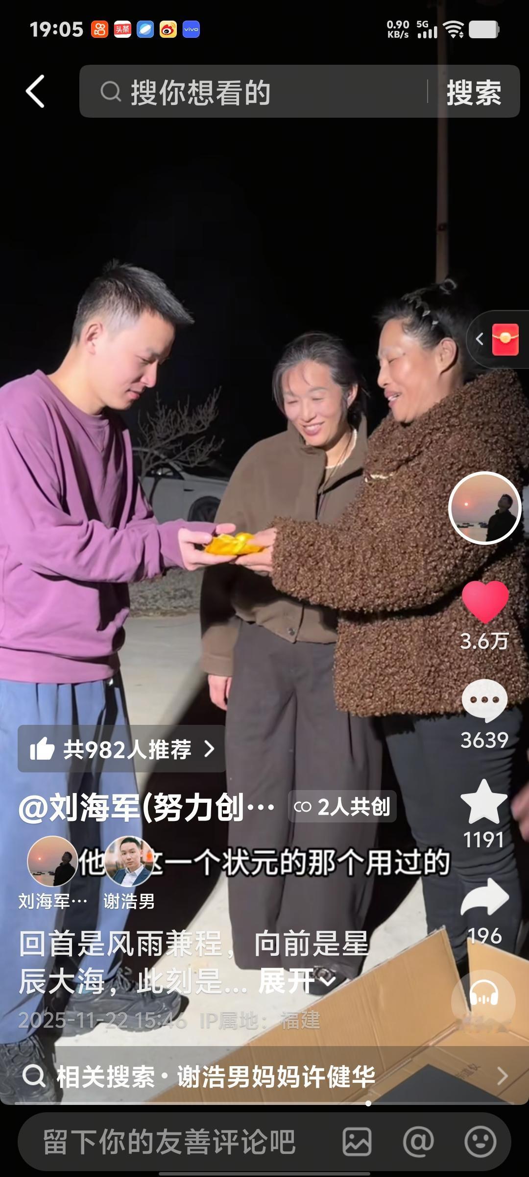 同命相连的战友情!谢浩楠海军家过首个生日,星星+状元墨+专属戒指,满是温暖与惊喜~ 谢浩楠回家过的第一个生日。是在海军的家里。美味的烤羊。热烈的篝火晚会。 这个生日给浩南准备了满满的惊喜。海军送给浩南一颗星星。还有天文望远镜。让他可以观测属于自己的那颗星星浩南很感动。 大妹给哥哥亲手做了一个戒指,上面还带着浩南的名字缩写。海军的妈妈。送给浩楠一块墨,据说是一个状元用过的。祝浩楠学业有成。 明天就是海军账号直播的日子。海军带着。公司的人来到了自己的老家。母亲就住在山腰上。 这里养了很多结合还有两只大坨了。哦明天的直播也会在这里举行。儿子的归来让妈妈十分的欣喜 浩南和海军都是一样的,同命相连之人。当初都是为了自己挣学费。去参军了。 在部队里共同吃过的苦,也成为他们今后人生的宝贵财富。相信这场有浩南的助力直播一定会成功的。