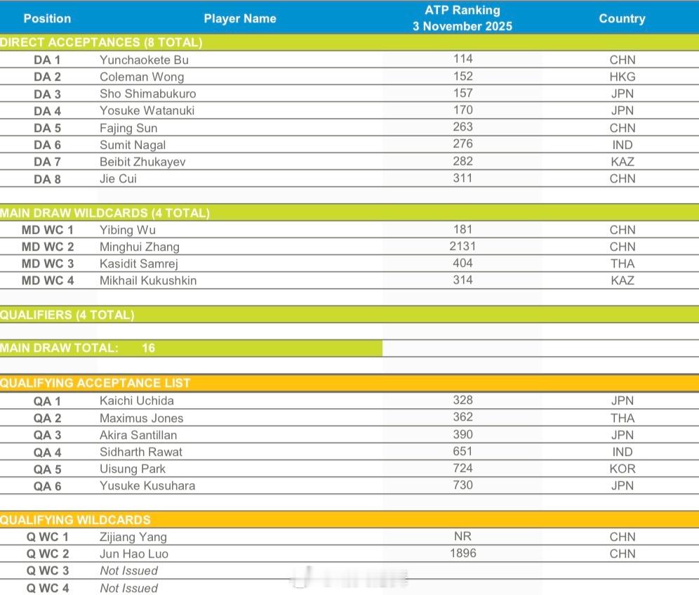 亚太区外卡赛男单名单更新(11.24)布云朝克特🇨🇳黄泽林🇭🇰岛袋将🇯🇵绵贯阳介🇯🇵孙发京🇨🇳纳加尔🇮🇳茹卡耶夫🇰🇿崔杰🇨🇳外卡:吴易昺🇨🇳张明辉🇨🇳萨姆瑞🇹🇭库库什金🇰🇿男子这边没啥变化,强手如云 竞争激烈!