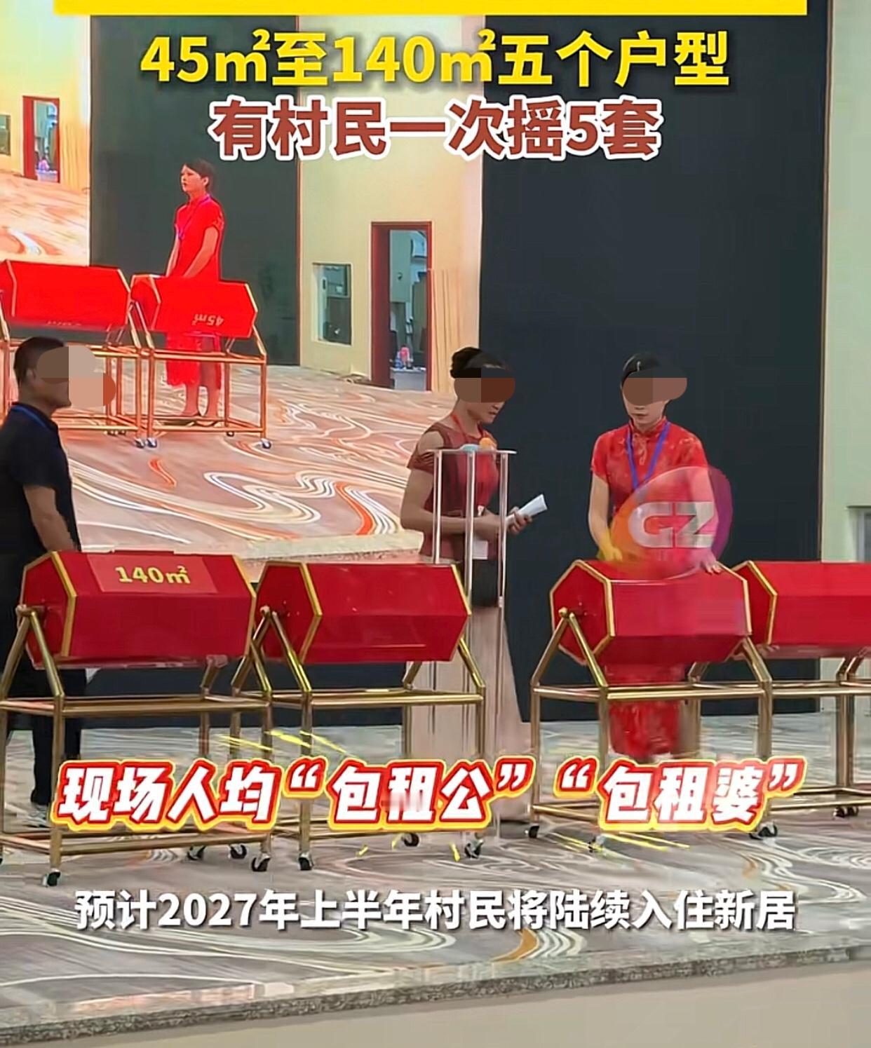 广州黄埔红山街沙埔打千名村民,11月22号开始摇珠分房了! 有人一下就摇到5套房,真正实现了村民变成了“包租公、包租婆”了,整个小区家家户户都挂横幅“有房出租!”可有想过没有,现在这个环境这么容易租出去呀,除非和城中村差不多一样的价格。不过,对于村民来说,这两年和以前比,差远了,以前大多数是1赔1.3,够胆不搬的,1赔2!比如你家有300平,可以赔1000平,差不多10套房。 来源:珠江新闻) 看到越来越多的村民醒了!其实拆迁,对那些想改变居住环境的人,有时候是好事情,自己的独栋小别墅没有的话,只能望洋兴叹。外面的可以有,可以不住,但是自己家的独栋小别墅宅基地,这个才是最珍贵的。但是,付出的总是回不来的奢望了,正所谓有失才有得。