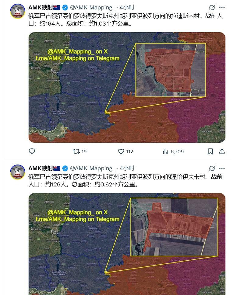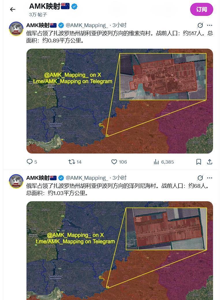 大洋洲信源承认,俄军占领了 切尔沃涅(又名“维索克”)、泽列尼盖(图1),以及 新扎波罗热(图4)和 拉迪斯内、涅恰伊夫卡(图6)。 俄乌局势新进展 烽火问鼎计划 海外新鲜事