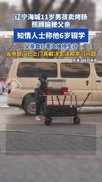 11岁的手,该攥着课本背唐诗,还是捏着烤肠签翻炭? 辽宁海城的小宇,6岁就没上学了,爸爸打零工攒的钱,全送进医院治脑梗。现在他每天5点起烧炭,翻肠时手被油溅得红印子,自己舍不得吃一根,说要换爸爸的降压药。 有人说这孩子真懂事,撑起了家;也有人说,11岁本该在教室,不该当顶梁柱。 可我看着他沾着炭灰的脸,突然鼻子酸,懂事从来不是苦情标签,11岁的肩膀,不该扛这么重的生活。 好在当地部门已经上门了,希望能把课本还给她。 你觉得他最需要的,是烤肠摊火起来,还是重新坐回教室?