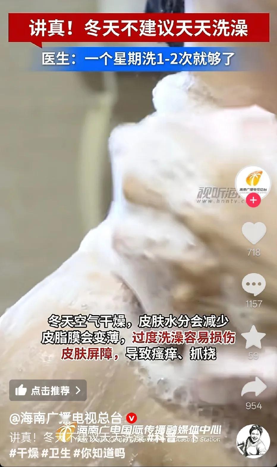 确定吗?哪个医生说的[呲牙]冬天不建议每天都洗澡?还说每周洗1-2次就好了。来来来,华南F3集合,告诉他们咱们的节奏是什么…… 不管多冷,反正,从小到大,都习惯了天天洗澡,一天不洗澡,感觉躺在床上会不得劲儿,必须要洗,而且好好洗!洗干净。 如果一周才洗1-2次,感觉出去怕别人闻到味道。冬天了,你们那,一周洗几次?冬季洗澡频率