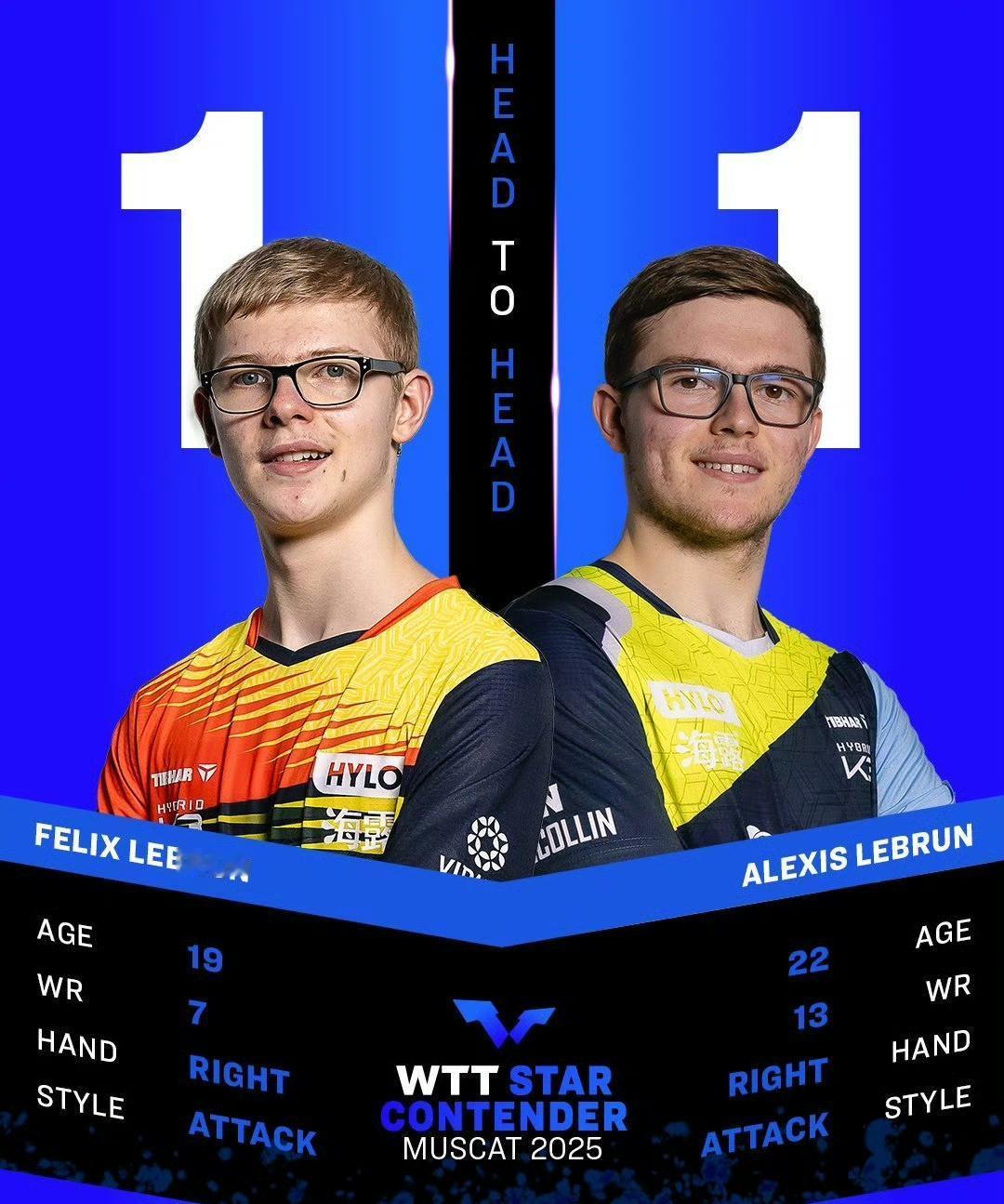 五分钟一局,像按了快进[吃瓜群众], 前四局小勒布伦🇫🇷11-8,11-8,11-4,5-11被哥哥大勒布伦🇫🇷扳回一局, 嚯,第五局又被大勒布伦13-15拿下了! 这俩人好像担心赶不上回家的飞机,打得飞快。 两人都是穿着粉红色的球衣,不过小勒布伦胸前是黑色图案,大勒布伦胸前是天蓝色图案,另外小勒布伦的头发颜色浅一些[笑哭]。 前三局打完,我还以为大勒布伦又要捶桌子了,谁知道第四局第五局他都扳回来了。 兄弟俩够意思,知道观众没看过瘾,不仅爆分,还又续上一局[允悲]。 评论区继续围观哦[吃瓜群众]。