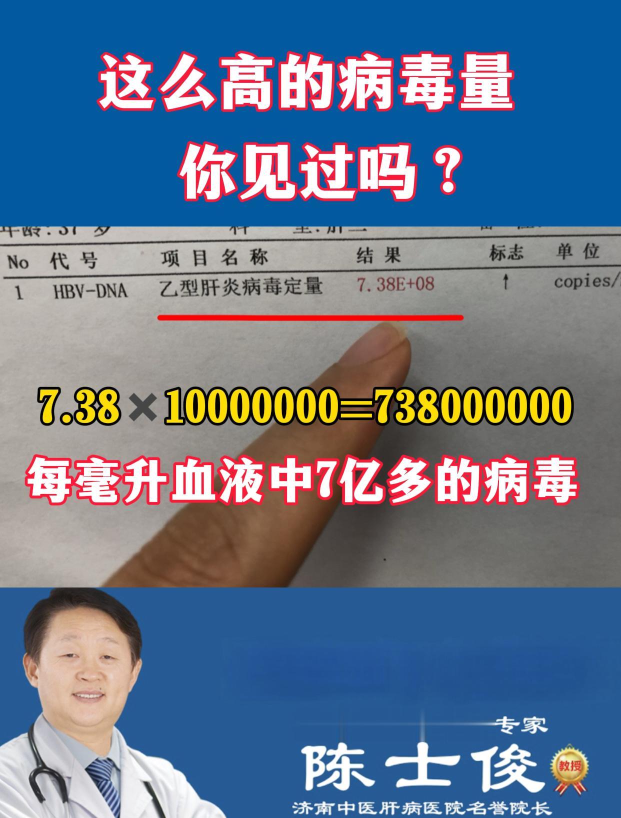 8次方的病毒量,每毫升血液里有7亿多的病毒量,这时候应该及时抗病毒治疗...
