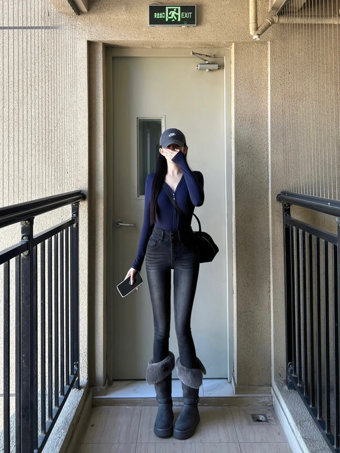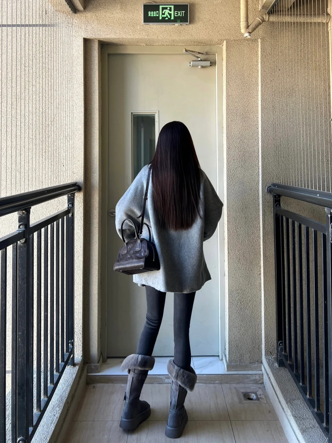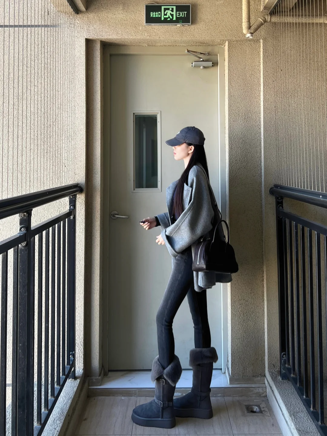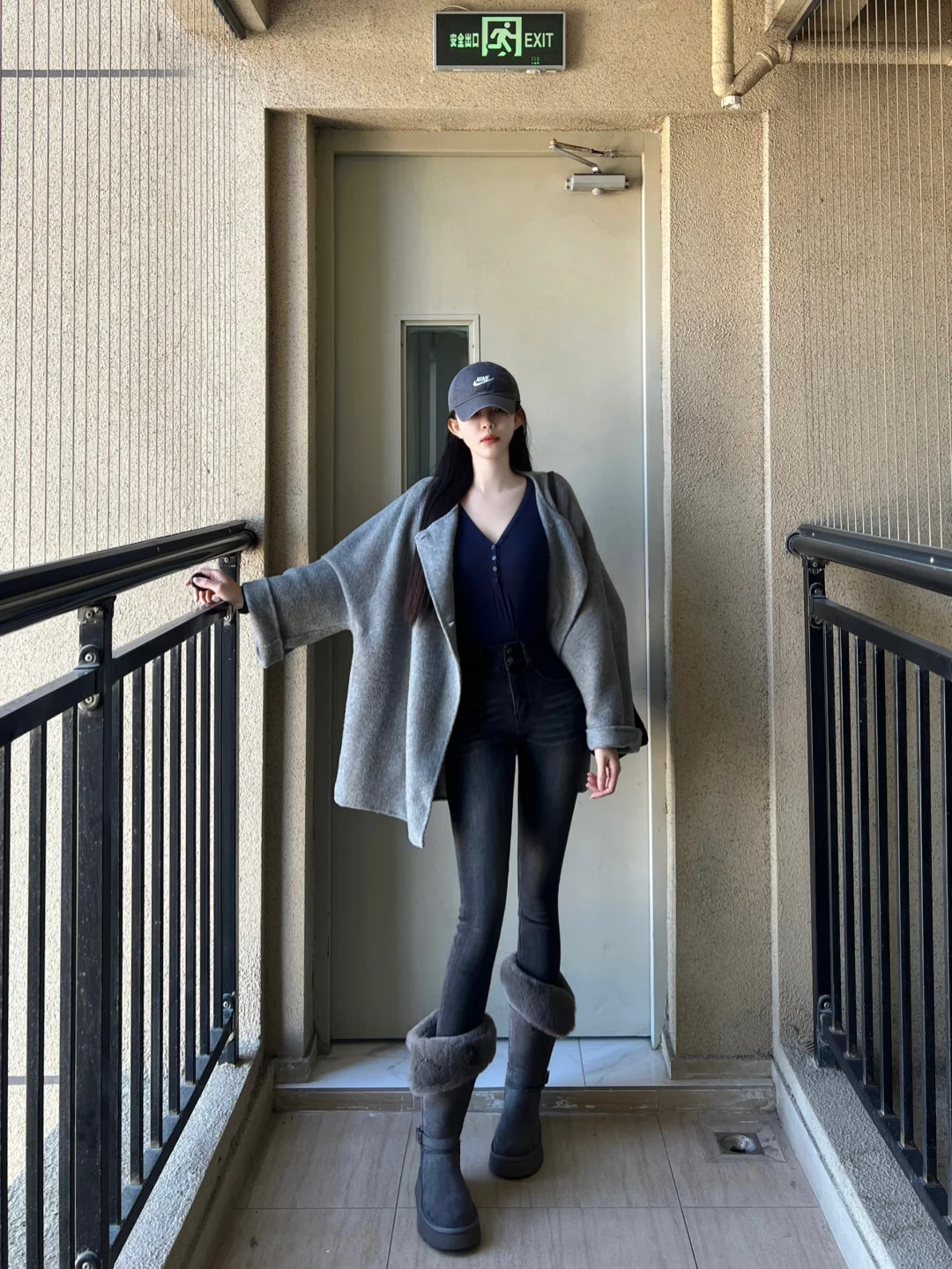 冬季穿搭 靴子 加绒裤子 外套 降温穿搭