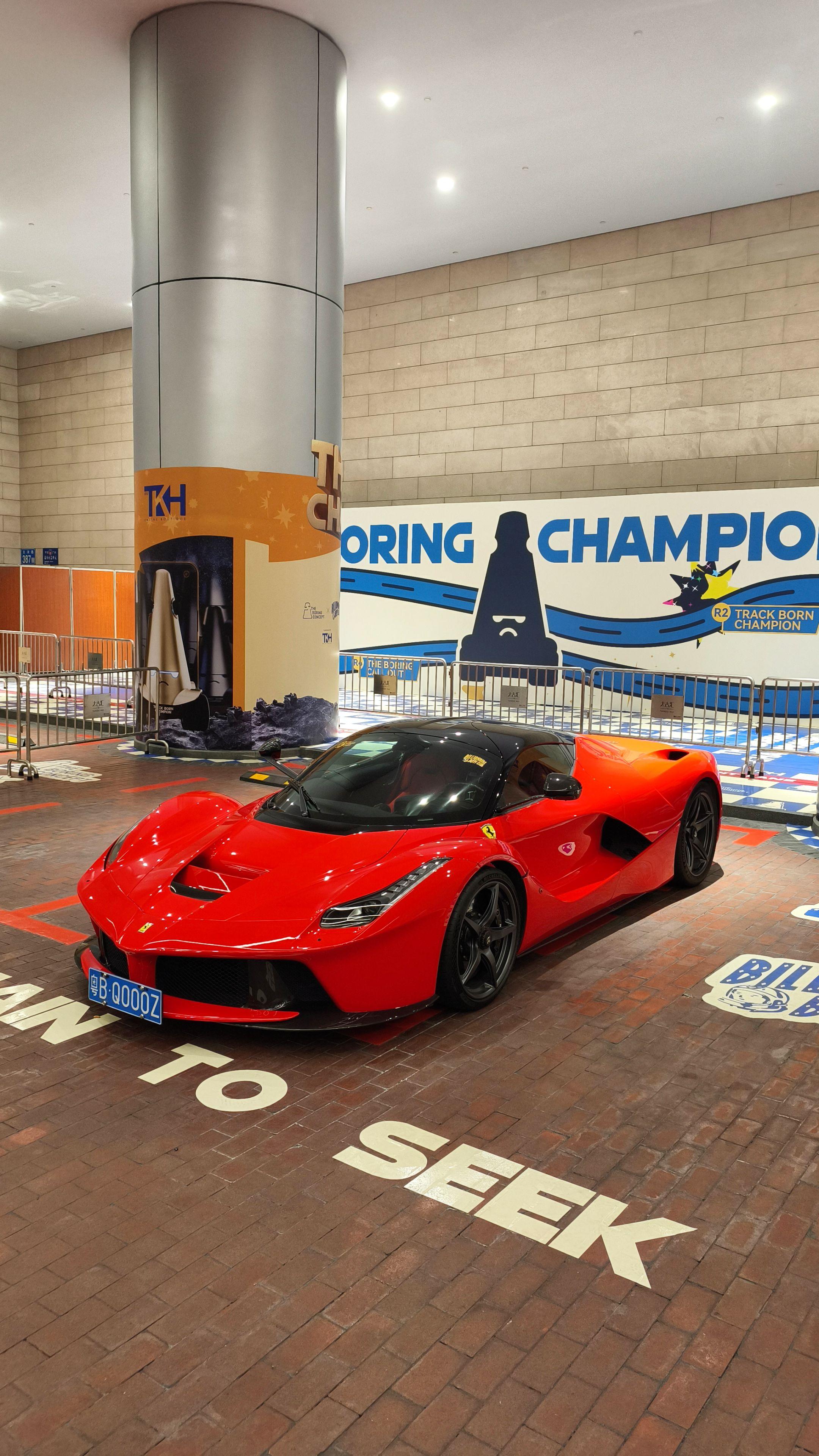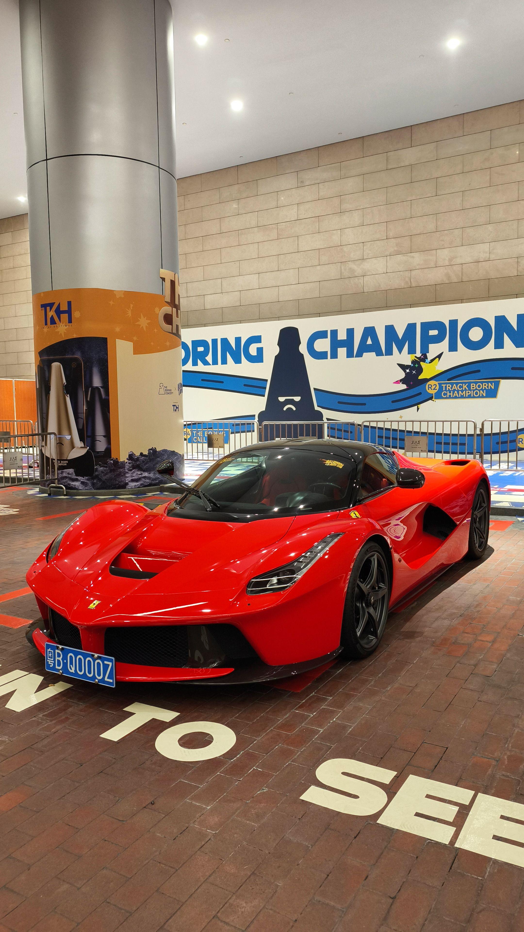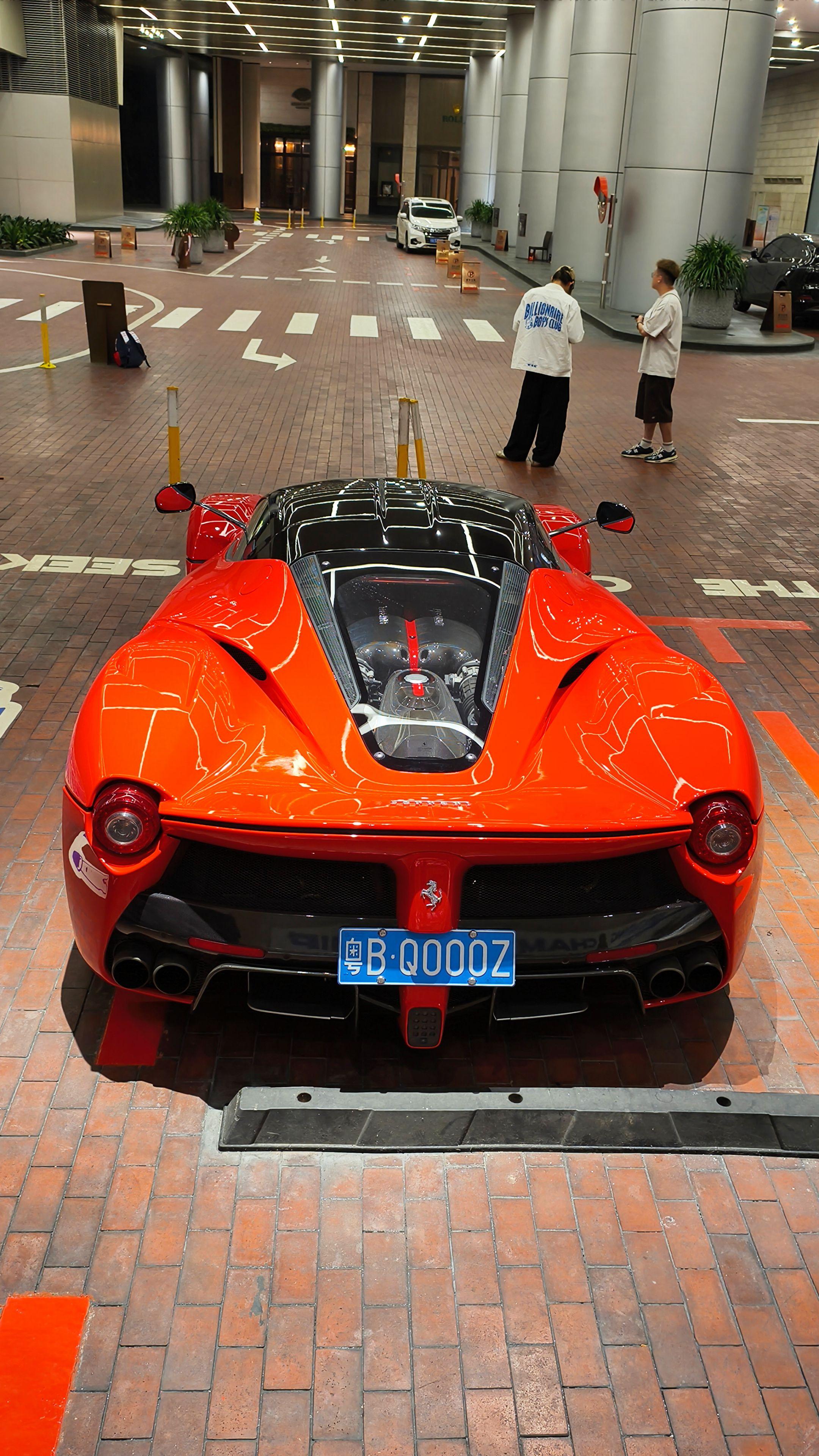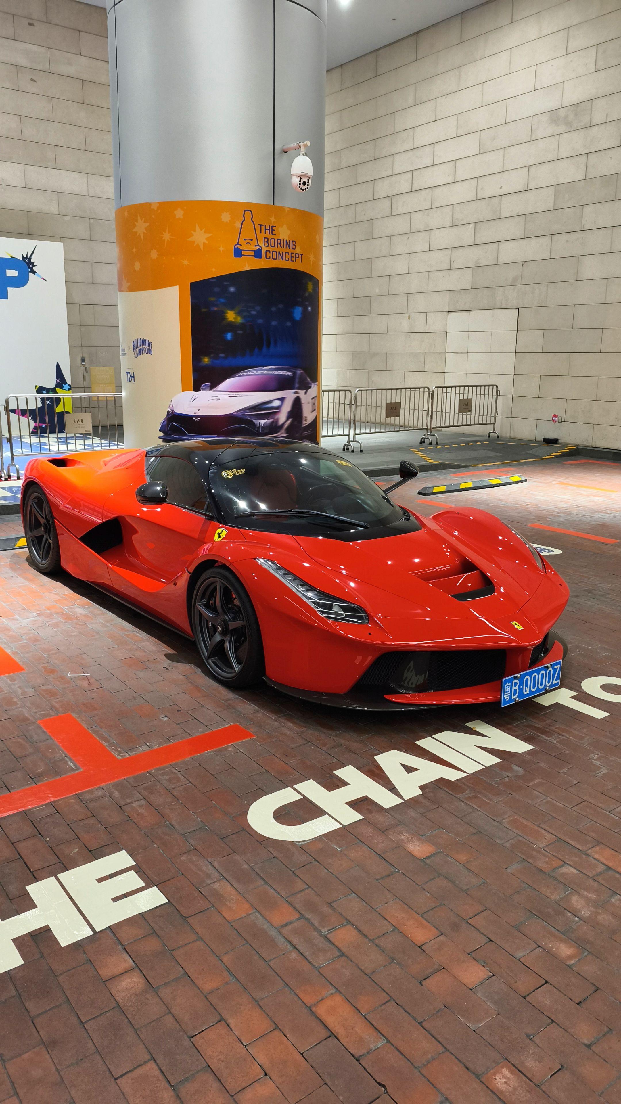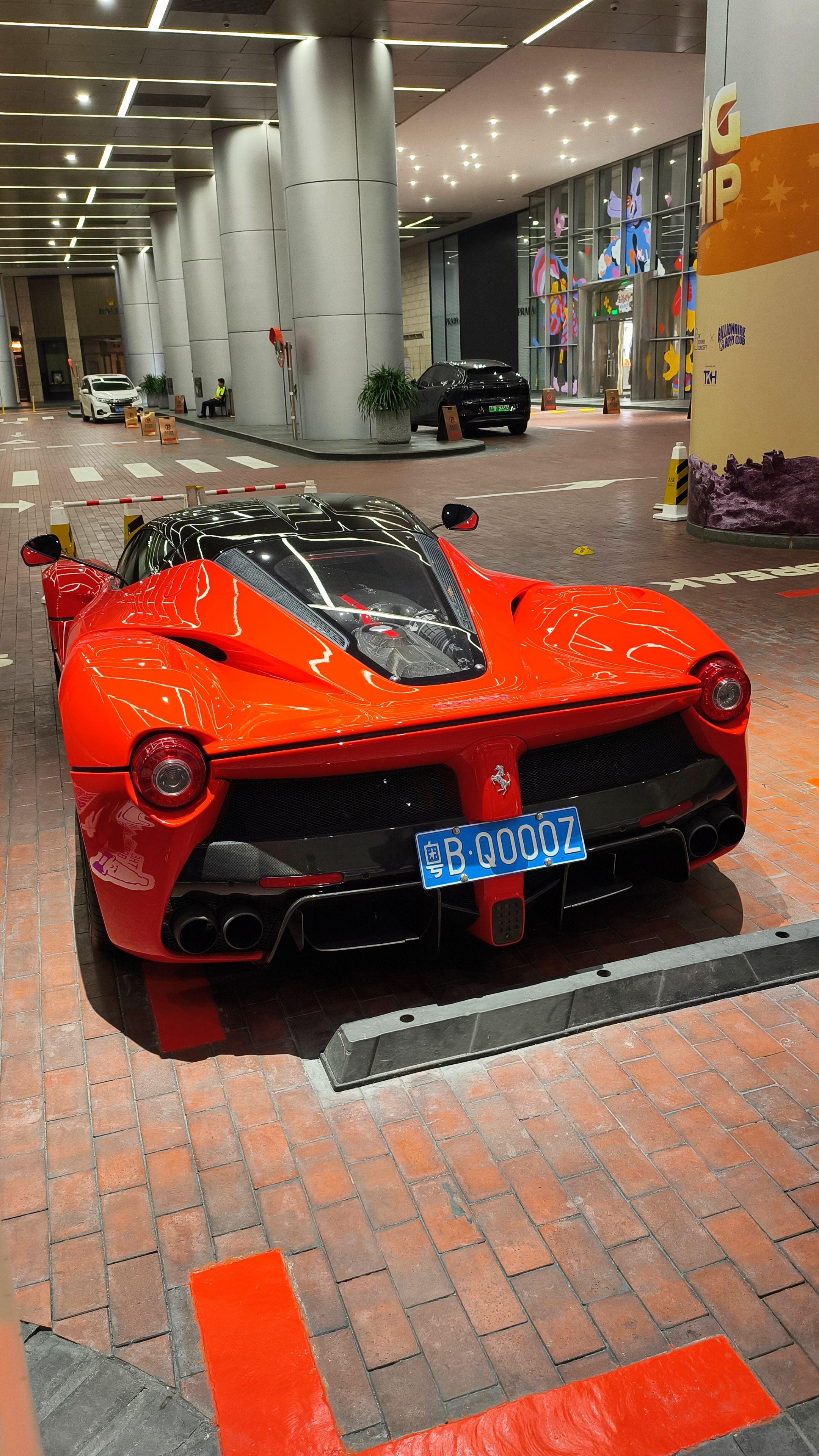 在广州太古汇偶遇玩车大佬座驾红色法拉利拉法 时尚帅气的外观造型过了十多年看到还是那么的酷,800匹马力自然吸气V12发动机速度与激情