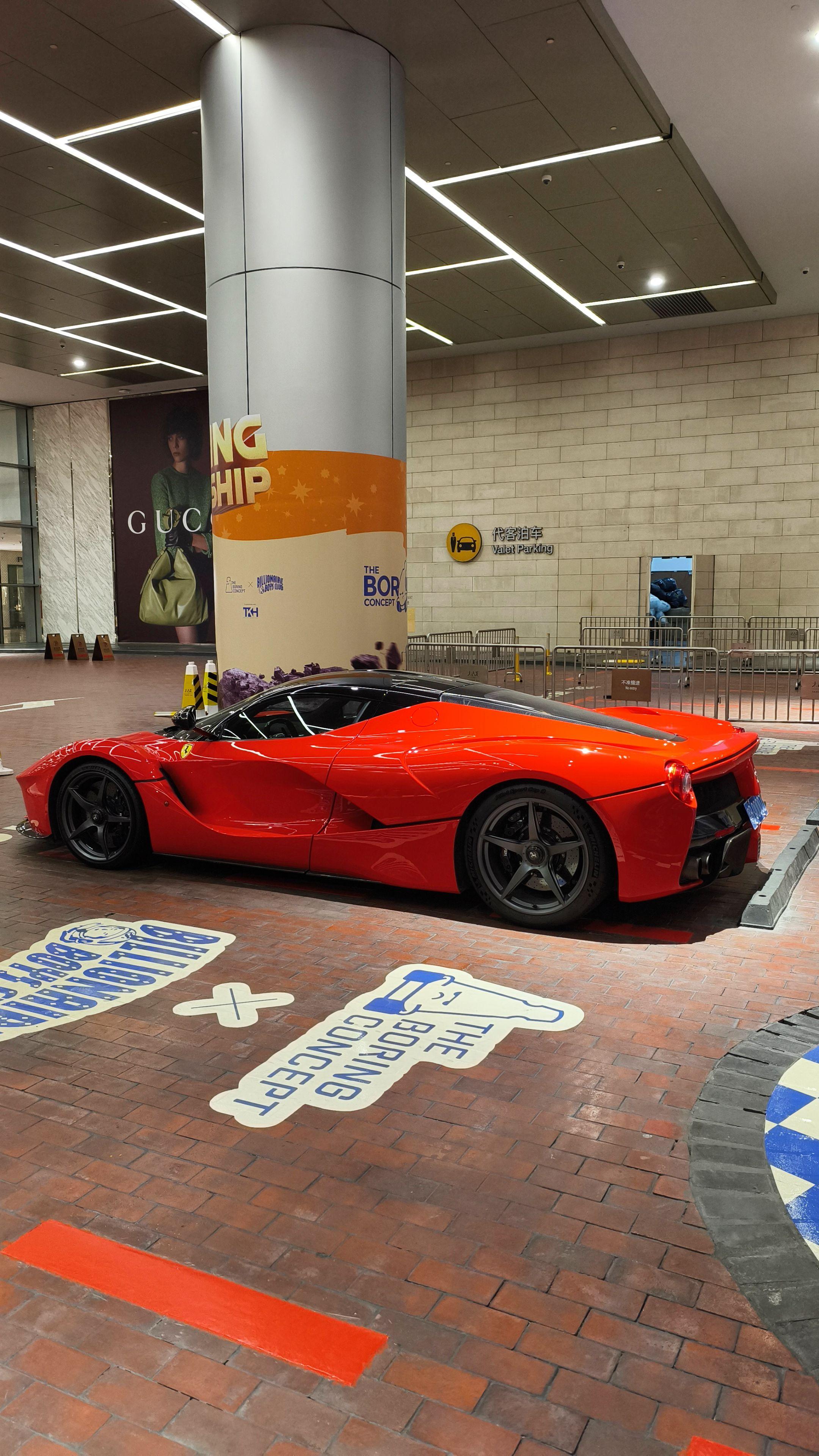 在广州太古汇偶遇玩车大佬座驾红色法拉利拉法时尚帅气的外观造型过了十多...
