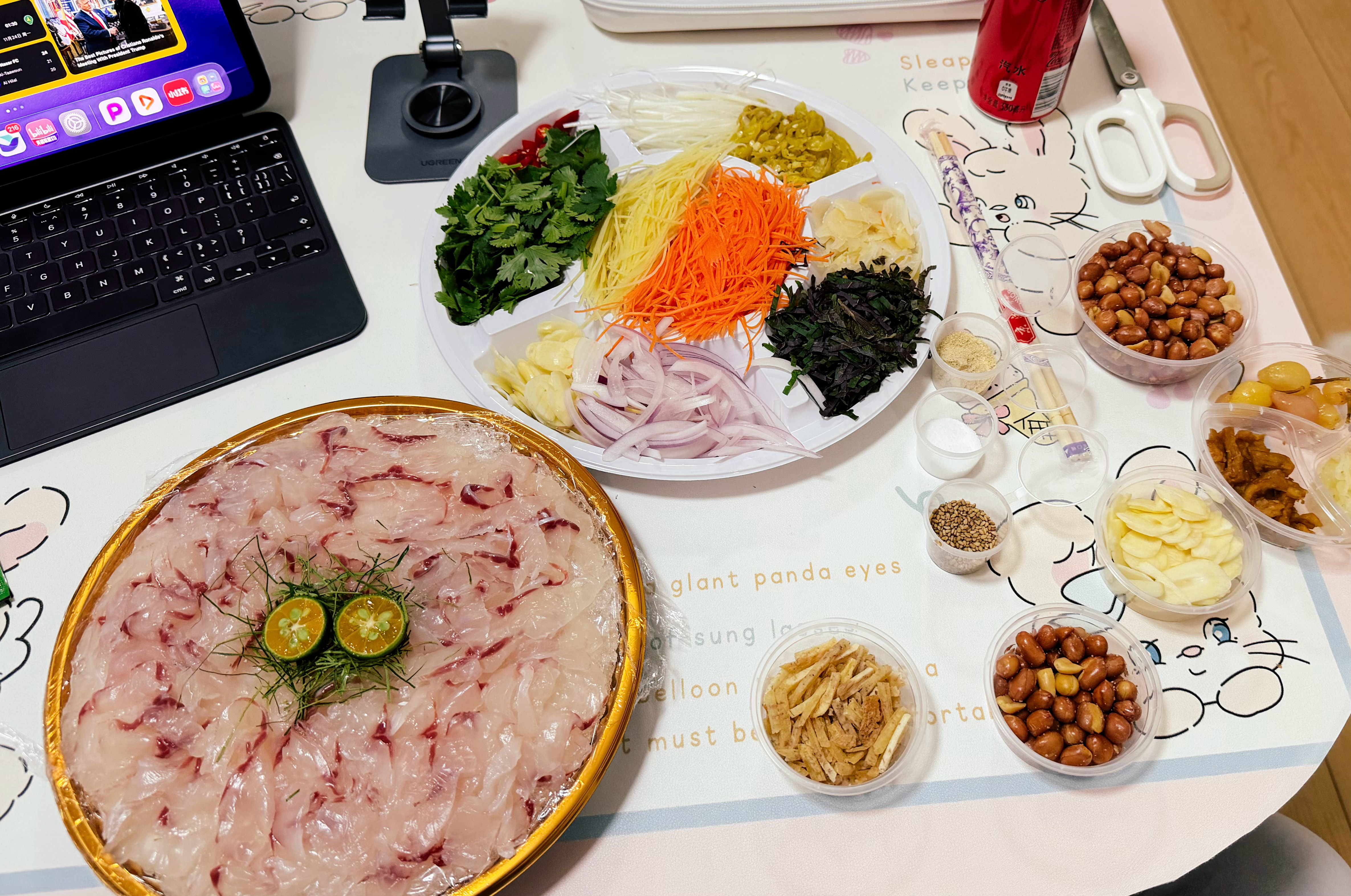 女朋友给我点的鱼生,非常好吃,只不过边吃边拉肚子
