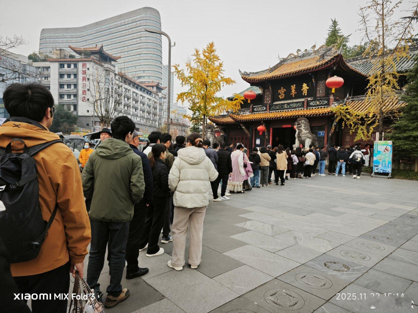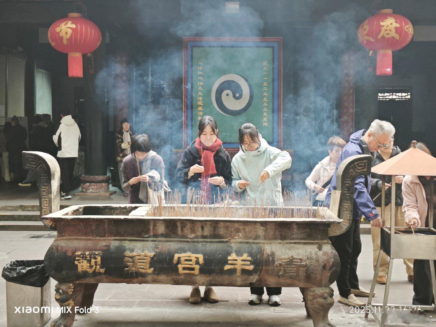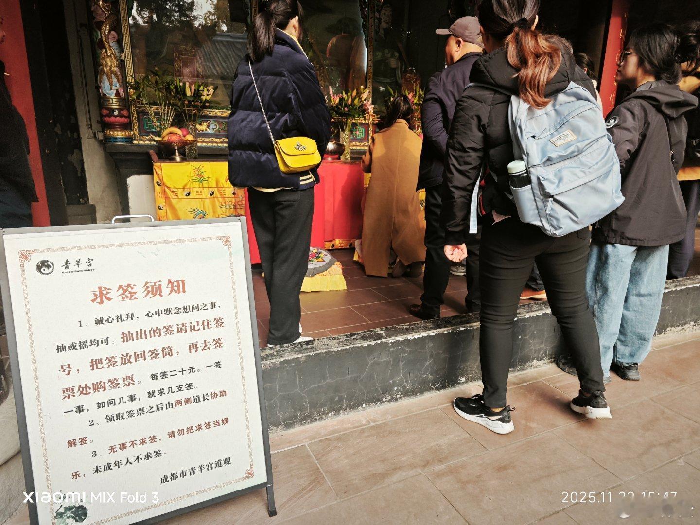 没想到进青羊宫要排那么长的队,人气超过武侯祠和杜甫草堂,而且来的大都是年轻人,在这里看到我国传统文化的复兴,还是很感人的。随喜、求签都不用现金,扫码就可以,太方便了。来成都一定要来青羊宫,五块钱门票太值了。
