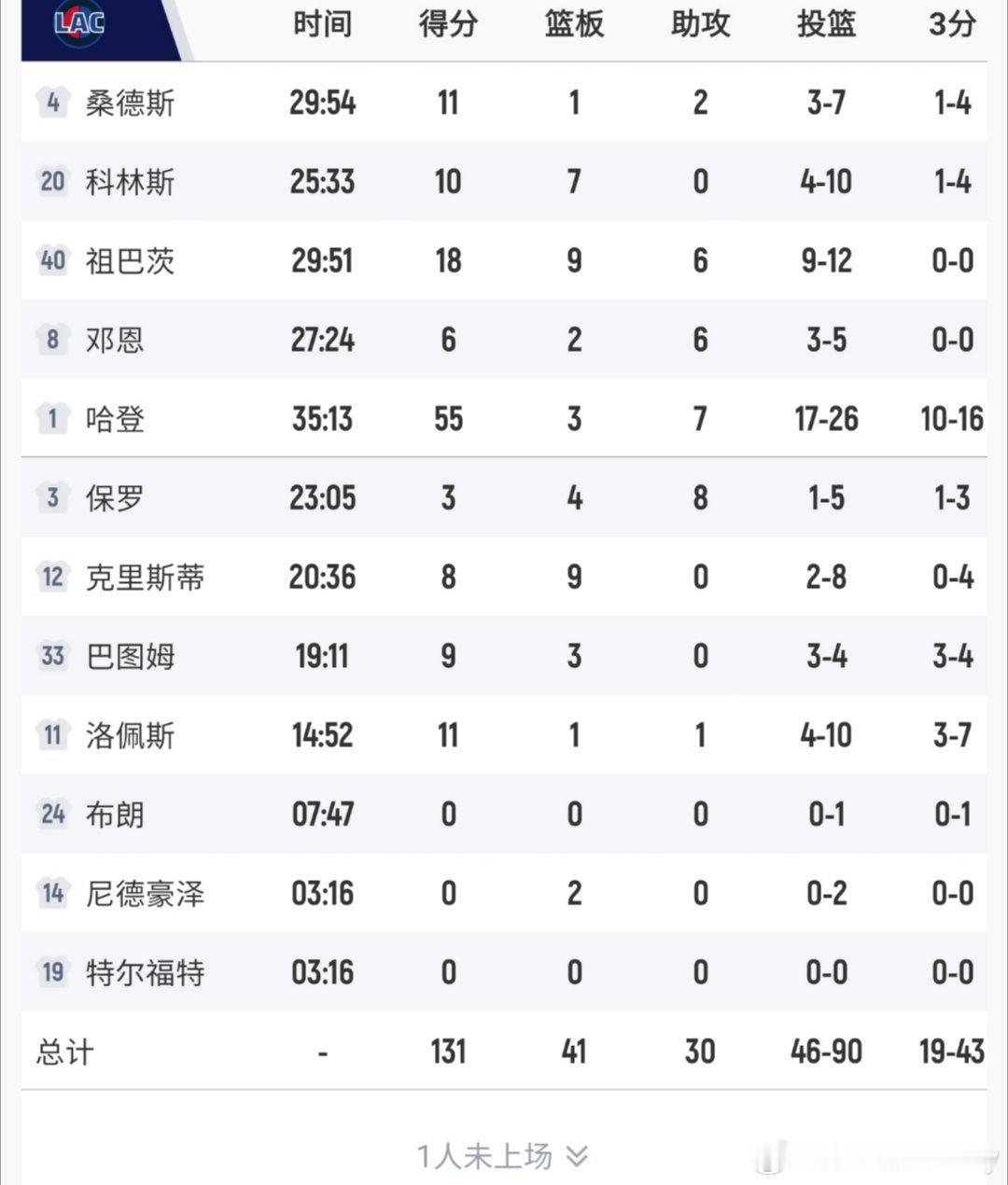我滴天!今夕到底是何年???——哈登全场出战35分钟——26投17中,三分球16
