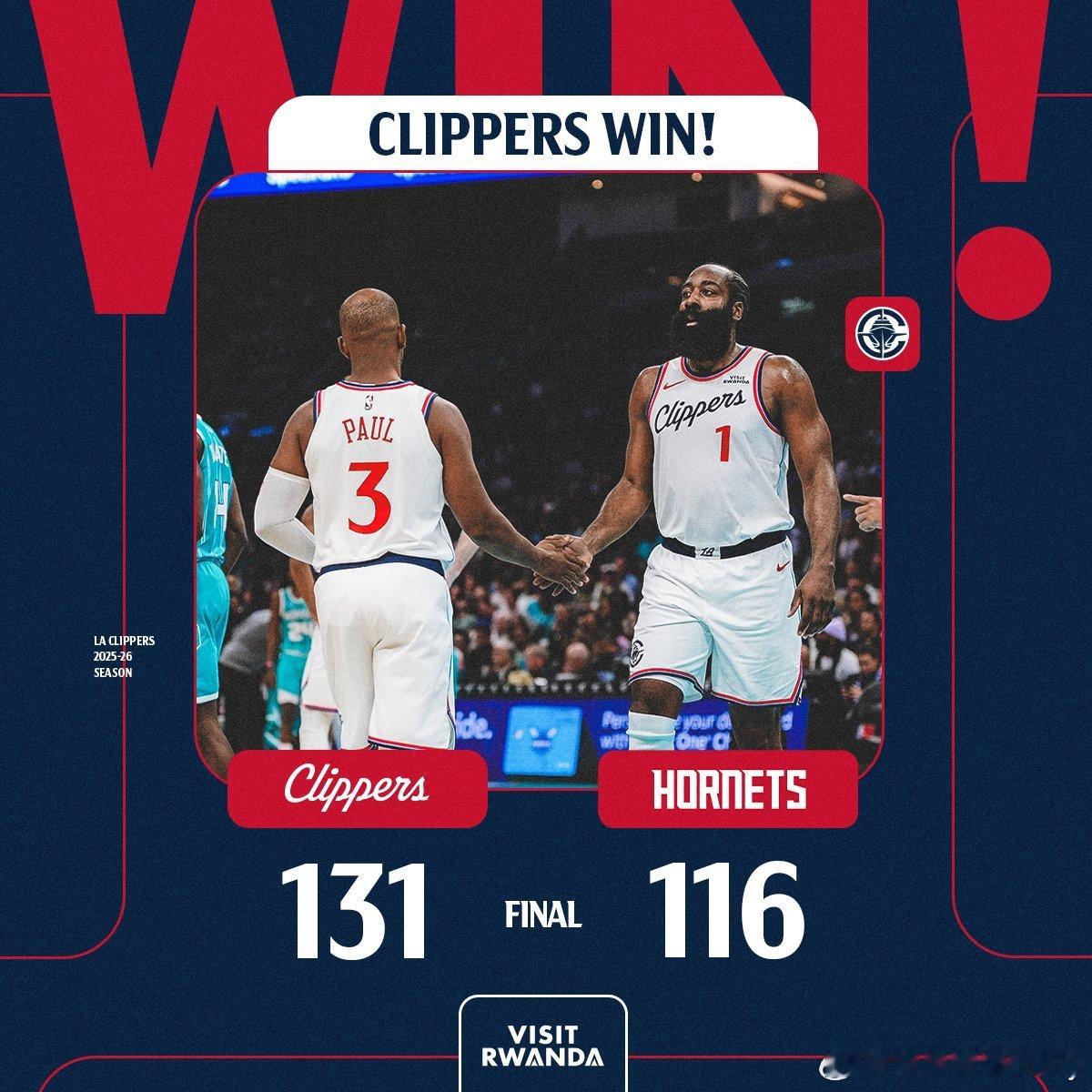哈登狂砍55分,快船131-116胜黄蜂,结束三连败。