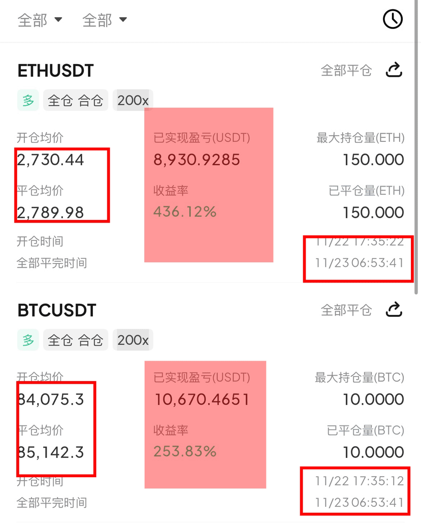 昨晚的长线布局总算圆满结束~趁着大饼和以太价格走低的时候做多,这波直接拿下10万