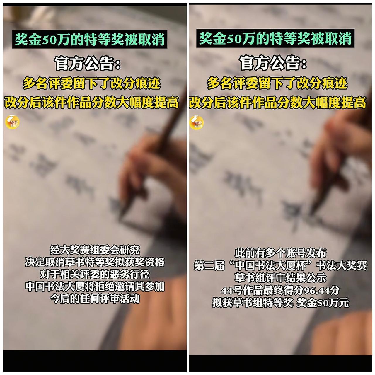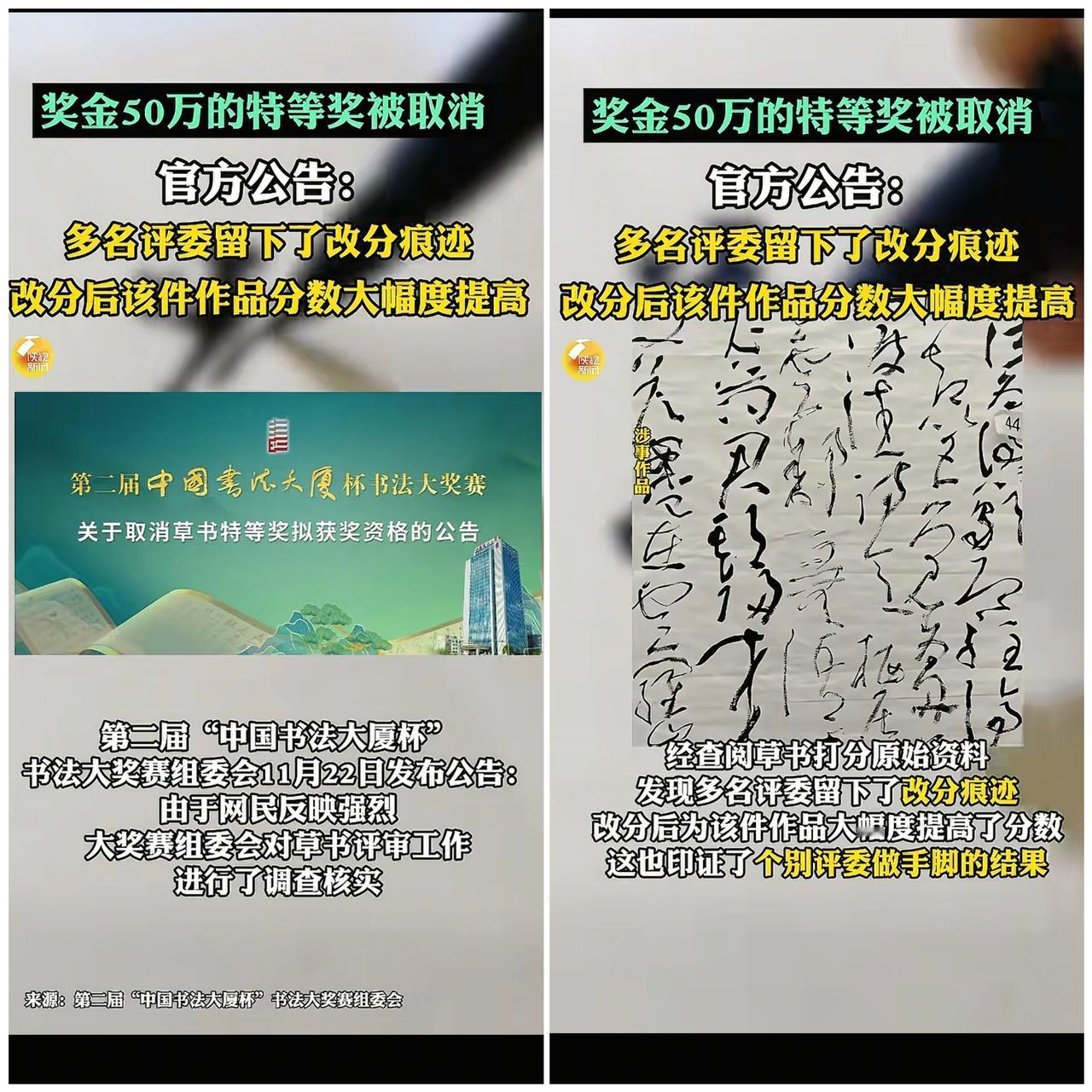 50万奖金的特等奖说没就没? 第二届“中国书法大厦杯”草书组这出“改分大戏”,简直比书法笔画还曲折!原本公示的44号作品,96.44分稳拿特等奖,结果因为评委“私下搞小动作”,直接被组委会取消资格,连50万奖金都飞了!这操作,网友直呼:“比电视剧还刺激!” 事情起因是网民举报,组委会一查,好家伙!草书组个别评委签了承诺书还敢“阳奉阴违”——私下拉票、改分痕迹明显,硬是把低分作品“拔高”成特等奖候选。 更讽刺的是,这场比赛原本主打“透明、公平、公正”,连评审都搞了网络直播,结果评委在镜头下还敢“暗箱操作”,这不是打自己的脸吗? 这事儿背后,暴露的是艺术评审的“老毛病”:人情分、关系分、利益分。50万奖金确实诱人,但艺术的价值能用钱衡量吗? 评委的操守能用承诺书约束吗?组委会这次“零容忍”处理,算是给行业敲了警钟——规则不是摆设,学术声誉更不是儿戏。 不过话说回来,光靠事后追责够吗?艺术评审的“透明”不能只靠直播镜头,还得有更严格的监督机制,比如第三方独立审核、评委背景公示、评分过程全程留痕。毕竟,公众信任一旦崩塌,再高的奖金也救不了比赛的口碑。 你觉得艺术比赛该咋防“黑幕”?或者你遇到过类似“不公平”的评审吗?