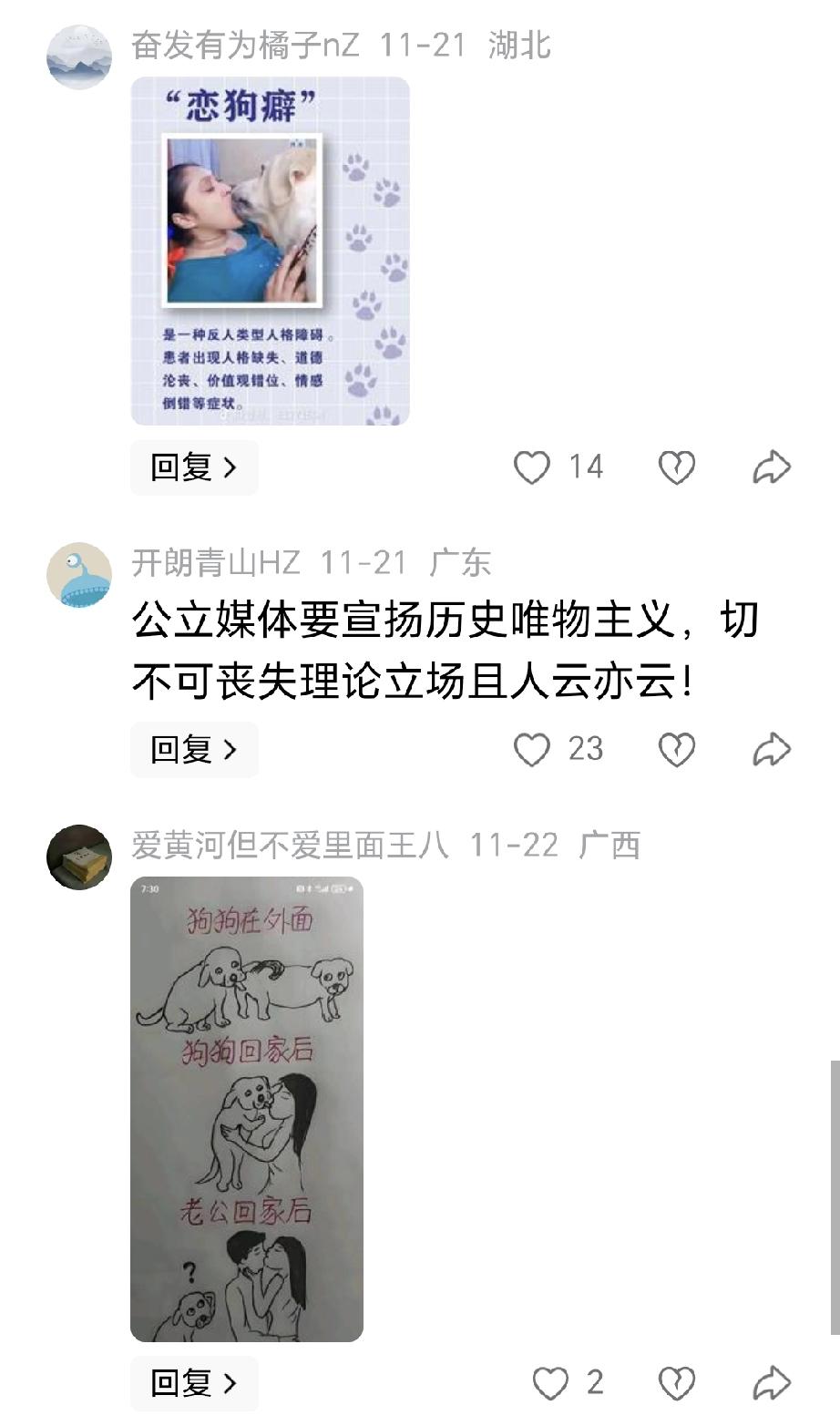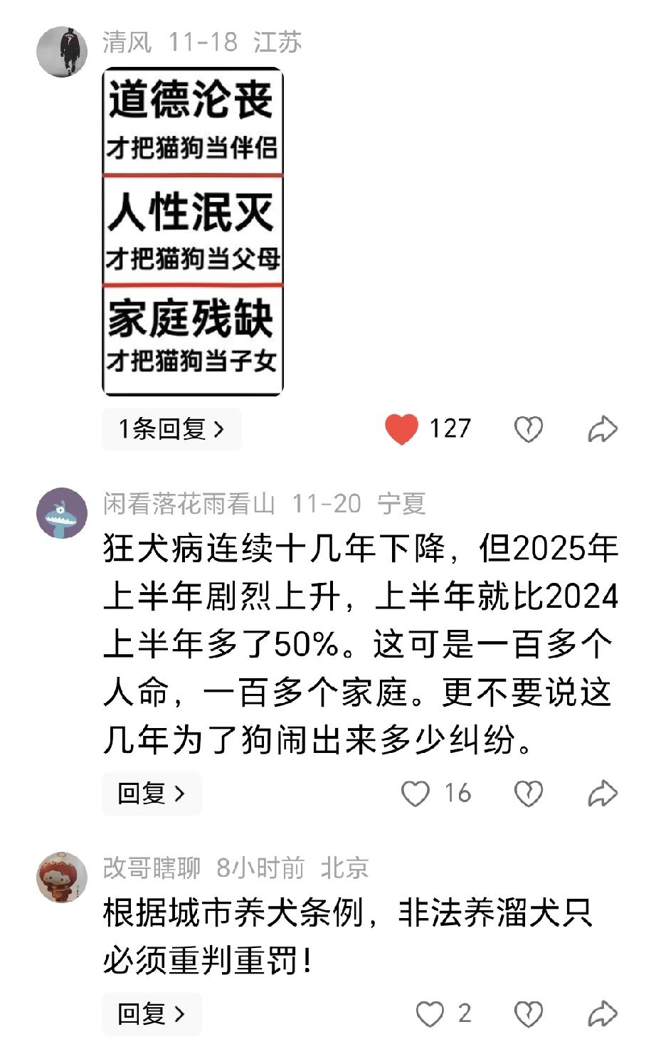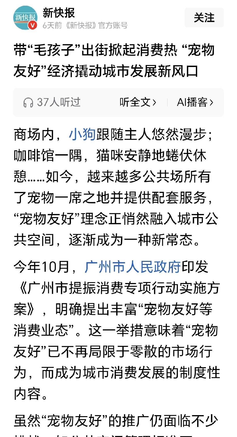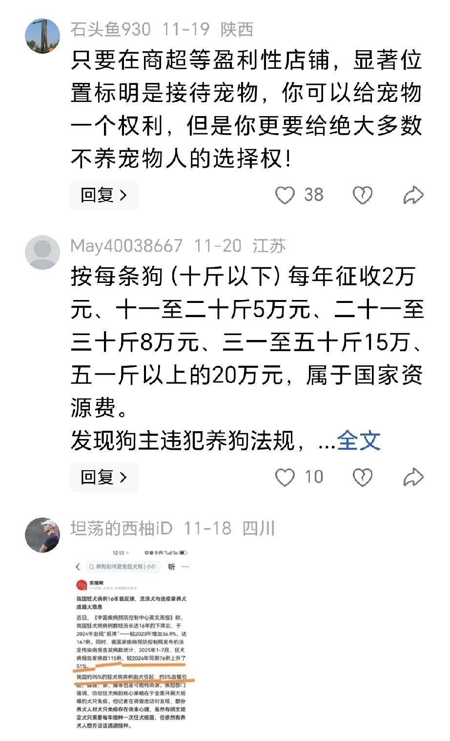 原来如此! 连续看到了两篇官媒发的文章,这两篇官媒在文章的题目中,都是把狗亲切地称之为“毛孩子”。强忍着看完全篇,指向性非常之明显,让“毛孩子”也能成为拉动消费的助推剂。 这几天山西长治的摔狗伤人事件还在媒体上发酵,成都女孩骑车被未拴绳的狗绊倒成为植物人……因狗患给广大公众带来的不便和安全隐患越来越多,越来越加剧了这方面的社会矛盾。而这两家媒体却全然不顾这些,却在猛烈鼓吹着所谓的“毛孩子”经济,想过因狗带给公众的不便和安全隐患吗,想过那么多被狗伤害过的无辜者的感受吗?所谓的“宠物友好”,也只是和狗主人之间的友好,和绝大多数公众之间,并不存在所谓的友好。 希望这些媒体人,能好好看看你们发布文章下面评论区的反响吧!