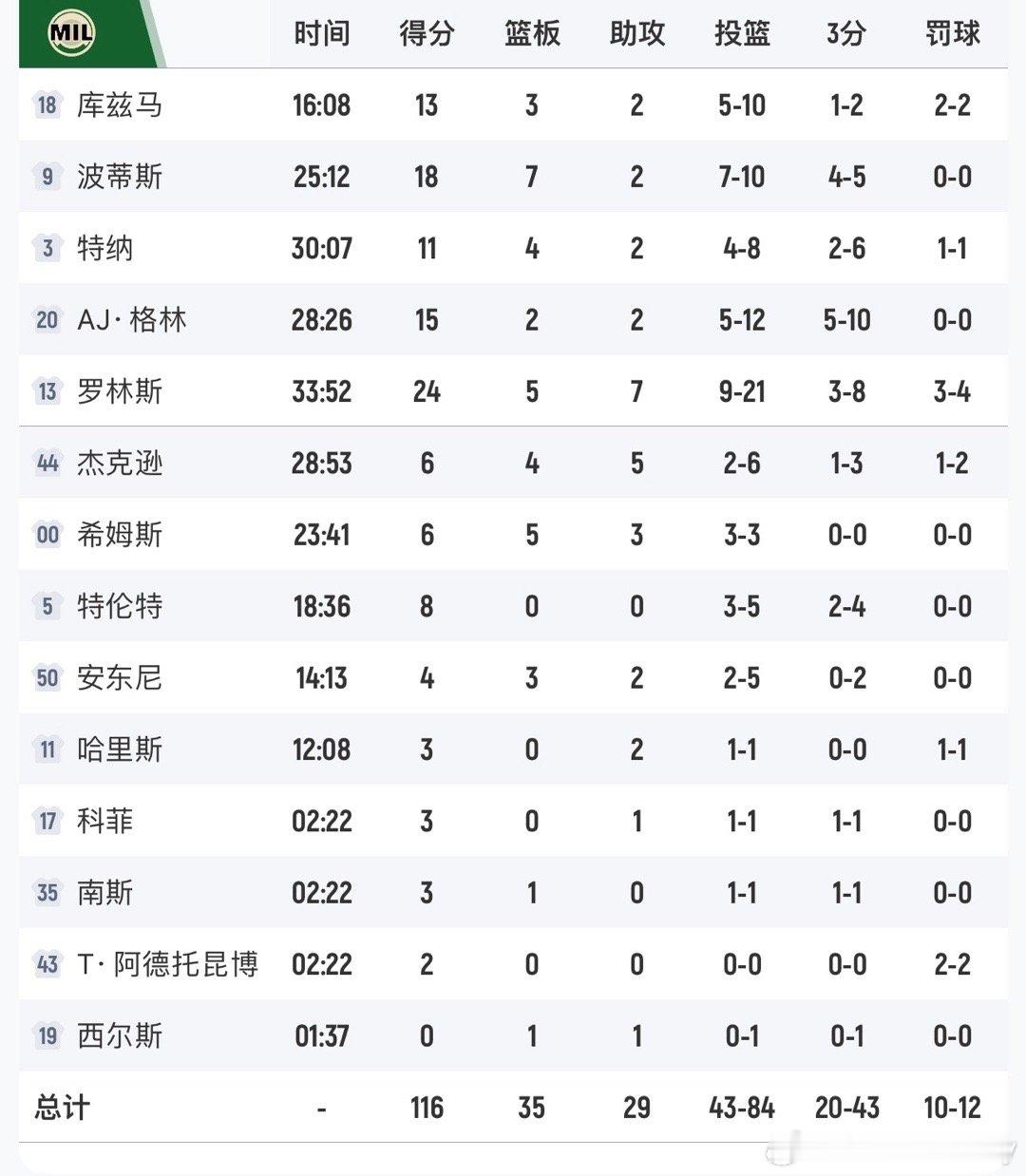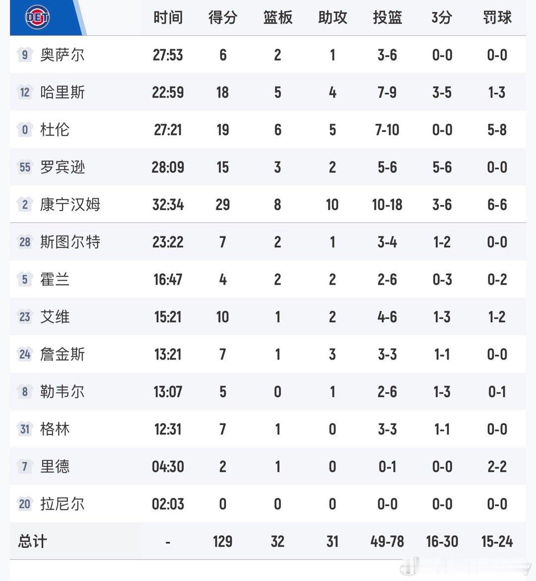 活塞129-116战胜雄鹿,豪取12连胜 CC29分8篮板10助攻,杜伦19分6篮板5助攻罗林斯24分5篮板7助攻,波蒂斯18分7篮板