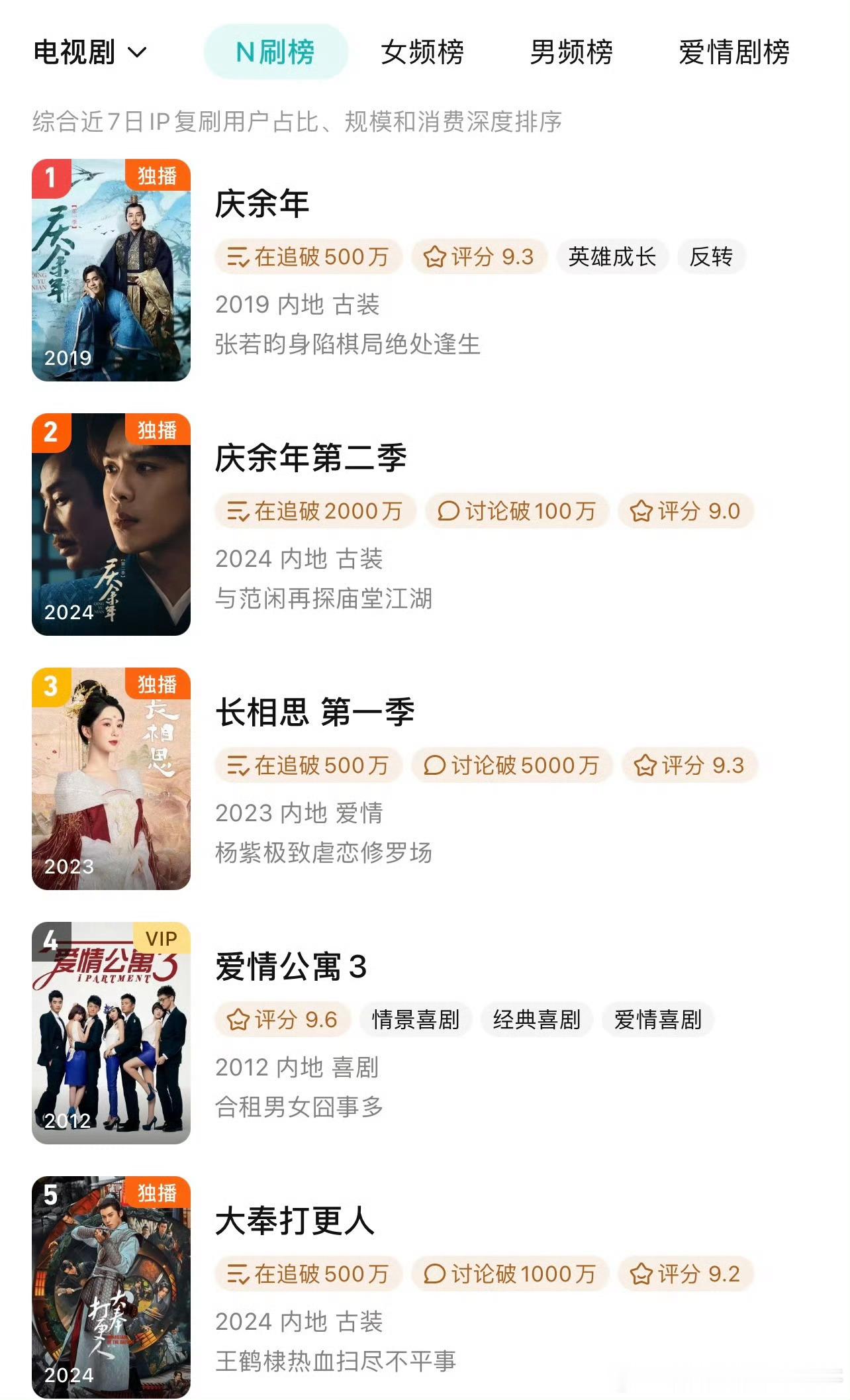 王鹤棣《大奉打更人》上升到🐧N刷榜第五,后劲好足🐮