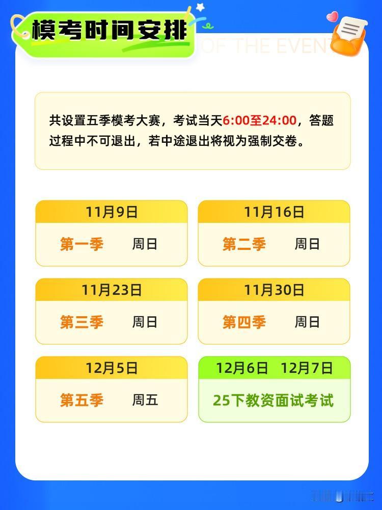 国考教资模考同步开考!时政押题+AI面试模拟,备考党抢分全靠它 备考国考教资的全炸锅了,俩重磅模考撞同一天开考,行测申论全覆盖还押时政,AI面试连流程都还原,不管考啥都能练手,错过真得拍大腿。 11月23号周日,2026国考终极模考直接上线,行测申论全科目都包含,还配着政治理论热点总结,二十届中央纪委四次全会、教育强国规划纲要全梳理,时政考点不遗漏。 山东等地区贴心给了职位表导入功能,能模拟岗位竞争情况,摸清对手实力,政治理论模块还针对性强化,35道真题加64道新思想模拟题,练完直接补薄弱项。 不少备考生愁时政记不牢,答题总跟材料脱节,模考刚好补这短板,热点全对标考点,做题还能熟悉题型,比自己瞎背效率高太多,练完心里也有底。 同日教资第三季AI面试模考也开启,完整还原考试流程,2道结构化题+1次试讲+2轮答辩,跟真实考场没差,新手也能提前适应节奏,避免上场慌神。 模考结束还能领专属报告,雷达图清晰分析能力短板,还有学段学科排名,知道自己站啥水平,连高分作答语音示范都有,照着学能补表达漏洞。 教资第四季模考定在11月30号,前后五季模考一直覆盖到12月初考试周,不管复习早还是赶进度,都能找到适配场次,多练几次面试底气更足。 备考生最愁盲目刷题没方向,国考模考能测真实水平,教资模考补面试短板,不用瞎琢磨考点,跟着模考节奏练,比自己啃书省不少劲,抢分更精准。 有人觉得模考没用就是走个过场,其实不然,模考能练答题速度,找失分点,面试模考还能纠正仪态表达,提前避坑,考场上才能少出错拿高分。 国考拼时政积累,教资拼面试发挥,模考刚好精准对接需求,时政押题戳考点,AI模拟练实战,备考抓准这类机会,比闷头复习效率翻好几倍。 备考没有捷径,但找对方法能少走弯路,模考就是帮着找方向补漏洞,把每一次模拟都当实战,考场上才能稳发挥,别等临考才慌着抱佛脚。 机会摆面前得抓紧,不管考国考还是教资,多练一次就多一分底气,精准发力补短板,踏踏实实干练,才能在考场上脱颖而出,成功上岸不跑空。