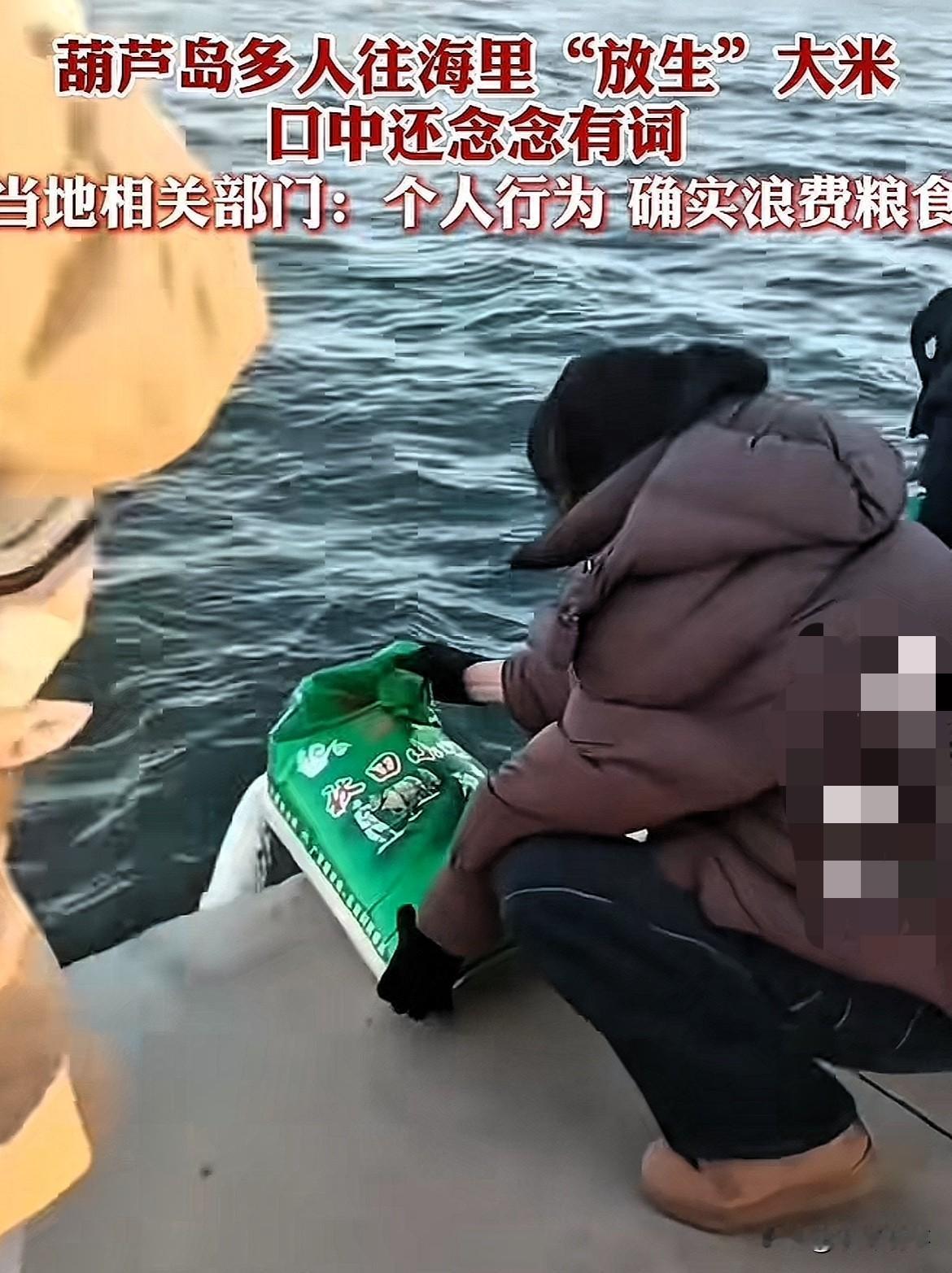 第一次听说,这大米还能“放生”?辽宁葫芦岛,几名老年人来到海边,把几袋大米倒入海