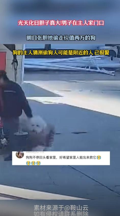 这胆子也太大了!河北保定,一男子在家里养了条巨型贵宾犬,放在家门口院子里好好的,结果却突然不见了,查询监控,发现被一名陌生男子强行拖拽带走,狗主人怀疑:这条狗价值20000元,对方可能就是附近的人! 据河池融媒生活频道11月22日报道,孙先生在自家院子养了条巨型贵宾犬,名叫“元宝”,那天,孙先生要去邻村办点事,临走前特意给它添满了狗粮和水,看它一切安好,才放心地锁门离开。 他怎么也想不到,这次短暂的分别,竟会让他和爱犬陷入一场煎熬,前后不过两个多小时,当孙先生办完事匆匆赶回家时,迎接他的不是往日里那个毛茸茸大家伙的热情扑跃,而是一个空荡荡、静悄悄的院子。 凉棚下,狗盆翻倒在地,狗粮撒了一地,但元宝却不见了踪影,孙先生心里咯噔一下,一种强烈的不安涌上心头。 他扯着嗓子在院里院外呼喊元宝的名字,却听不到任何回应,家人和邻居听说狗丢了,也急忙分头在村子附近寻找,可找了半天连个狗毛都没看见。 就在众人一筹莫展之际,孙先生猛然想起院子里装了监控,他立刻跑回屋里调取录像,屏幕上出现的一幕,让他瞬间怒火中烧。 监控画面显示,就在他离家后不久,一个穿着深色外套的陌生男子出现在院门口,那人先是小心翼翼地探头探脑,确认院子里没人后,便熟练地翻过栅栏跳了进来。 他的目标非常明确,径直走向了元宝,面对这个突然闯入的陌生人,元宝显然被吓到了,它下意识地往后缩,四只爪子紧紧扒着地面,不肯挪动一步。 但那名男子根本不给它任何反应的机会,一把抓住元宝脖子上的项圈,就开始用蛮力往外拖拽,元宝一百多斤的体重在男子的暴力拉扯下,显得毫无抵抗力,整个身体在水泥地上被拖行,爪子在地面上划出刺耳的声响。 在被拖拽的过程中,元宝不停地回头望向屋门的方向,眼神里充满了惊恐和对主人的期盼,然而,这一切都没能阻止男子的暴行,它最终被硬生生地拖出了院子,消失在了监控的尽头。 看着监控里元宝那一步三回头、充满无助的眼神,孙先生的心像被针扎一样疼,他立刻报了警,据孙先生说,元宝是一条纯种的巨型贵宾犬,当初花了整整两万元才买回来。 这条狗养了两年,每天的喂食、陪伴和玩耍,早已让它成为家里不可或缺的一份子,这条狗的价值,早已不能用金钱来衡量,这件事在网上发酵后,一些人的评论让孙先生感到格外刺眼。 有人指责他没给狗拴绳,认为狗在自家院子里不拴绳,就等同于流浪狗,被人牵走也是活该,这种论调,无疑是在受害者的伤口上撒盐。 我们必须弄清楚一个基本常识:要求给狗拴绳,是为了保障公共场所的安全和秩序,而自家的院子,是彻彻底底的私人空间,把宠物放在自家院子里,和我们把车停在自家车库、把手机放在自家客厅,性质上没有任何区别。 难道因为车没上锁、手机没加密,别人就可以闯入私宅随意拿走吗?这显然是强盗逻辑,将私人领地内的宠物偷走,就是盗窃行为,如果采取了翻墙、强行拖拽等暴力手段,性质就更为恶劣。 这起事件的核心,根本不是狗拴没拴绳,而是人有没有基本的道德底线和法律意识,那个偷狗贼的行为,是赤裸裸的私闯民宅和盗窃。 他不仅偷走了一份价值不菲的财产,更撕裂了一个家庭的情感寄托,对于主人来说,宠物是家人,是朝夕相伴的伙伴。 这种失去“家人”的痛苦和焦虑,远比损失金钱要沉重得多,希望当地警方能够尽快将犯罪嫌疑人抓获,让元宝早日回到主人身边,这不仅是对一个家庭的慰藉,更是对社会公序良俗的维护。 它在向所有人宣告一个最朴素的道理:任何人的合法财产和情感,都神圣不可侵犯,无论是人,还是与人相伴的动物。 信源:河池融媒生活频道2025-11-22——家门口2万巨贵被光明正大偷走!主人疑是附近人,已报警追查