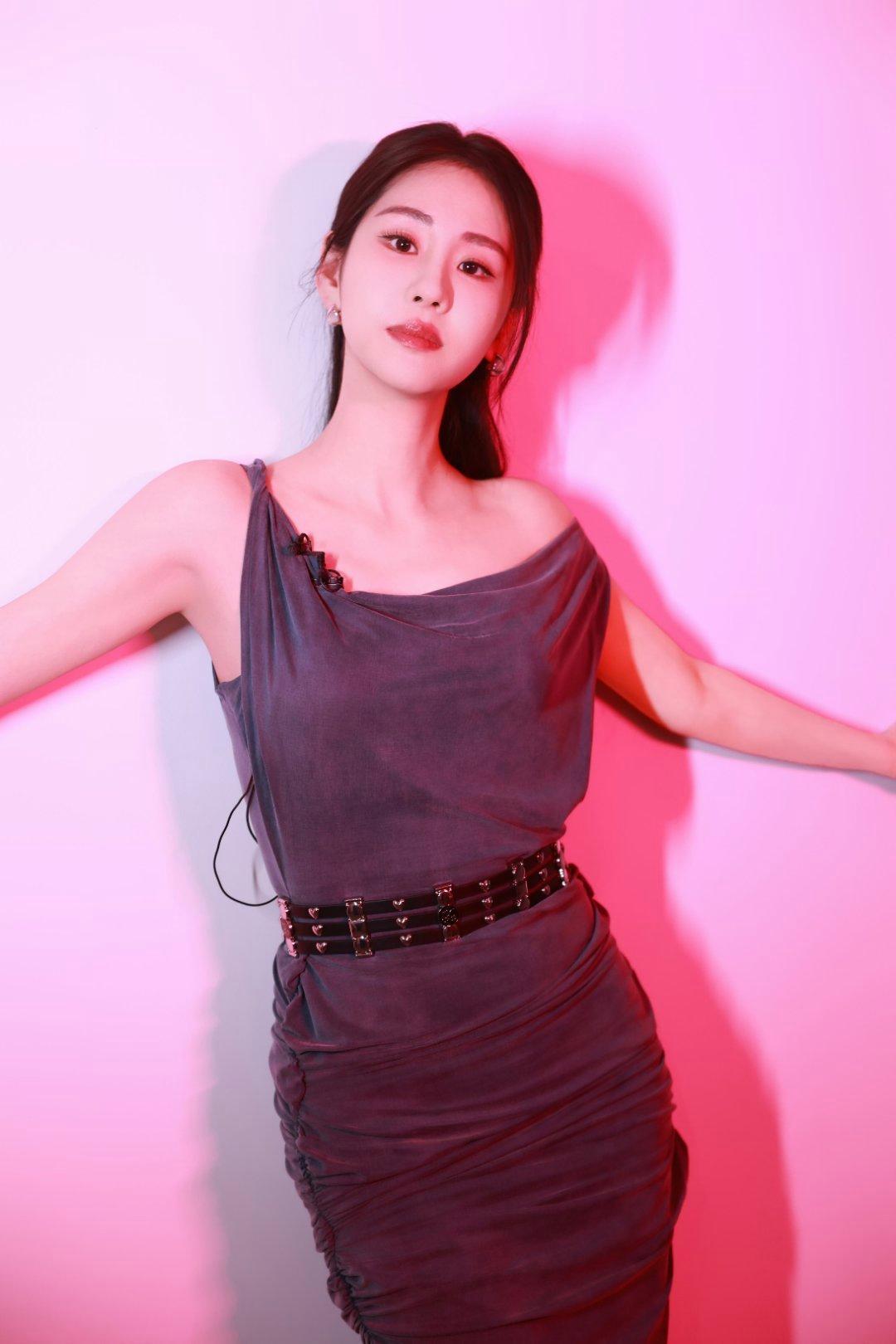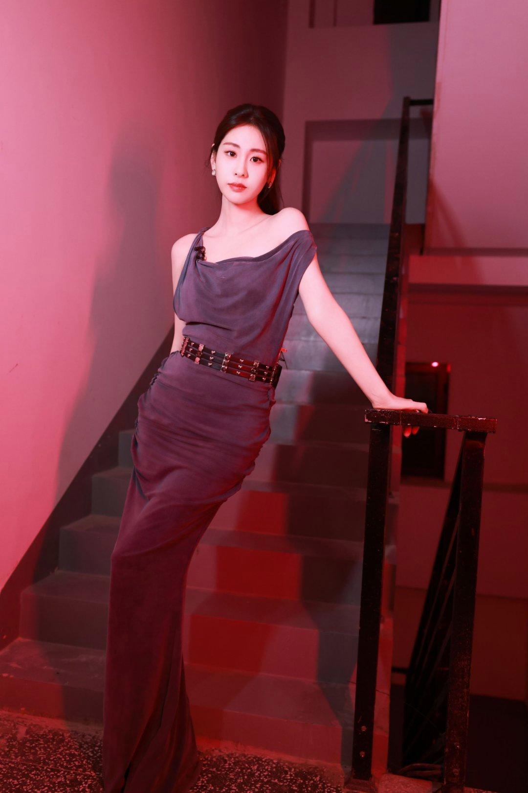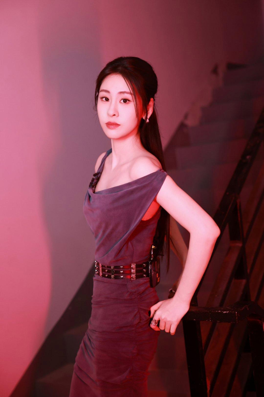 张碧晨这波“丝绒辣妹风”杀疯了!灰紫长裙+铆钉腰封=又美又飒的氛围女王