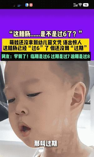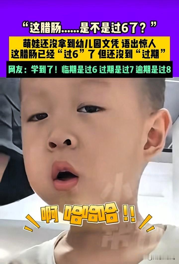 我发现三、四岁的小孩真的太可爱了,不是因为他们年纪小粘人,也不是乖巧听话,而是他们突不愣登从小嘴里冒出来的新词语,能把你逗笑得肚子疼。 厨房里,妈妈正在准备饭菜,3岁的儿子乖乖站在旁边陪着。 然而,接下来这对母子的谈话,让妈妈忍不住笑出鹅叫声。 妈妈一边切菜一边碎碎念:咱家这刀切腊肠费点劲啊。 儿子抬头看着妈妈,好奇地问:这腊肠过几了?过6了吧? 妈妈听了儿子的话,一时没反应过来,懵圈反问:啥叫过6了呢? 儿子贴心解释:就是腊肠坏了吧。 妈妈愣了一下:那叫过期。 然后,妈妈哈哈哈哈大笑,乐得停不下来。 再看身旁的儿子却一脸平静,他拉扯着妈妈的衣袖试图阻止:妈妈,你别笑。是过7了吧。 妈妈一边笑一边大喘气:你记差数了,是过期不是过6。 这个小男孩太可爱了,他可能在日常生活中,听过大人讨论食品安全,过期的食物不能吃,所以他就用心记下了。 但在他的小脑袋的认知里,他不知道“过期”是哪个qi。 不过,他学过数数,知道“7”,并且对数字还掌握的不错,还知道7的前面是6。 所以,在妈妈感叹腊肠太难切的时候,他误以为腊肠是不是坏了过期了。 于是好奇宝宝就问了妈妈一个意想不到的问题,“妈妈,腊肠过几了?过6了没?” 可是,没想到的是,此视频在网络上发表后,引发好多宝爸宝妈吐槽:他们家的小宝也独创出很多新词语。 一位宝妈说,她有一次逗3岁的儿子,“开学了,咱们就读幼儿园了”。 没想到儿子立马抛过来一个问题,“妈妈,关学了,是读几年级?” 儿子的问题,让那位宝妈硬是花了好几分钟才弄明白啥意思。 原来那个小朋友听到妈妈说“开学”,他不知道咋的就想起来“开”的反义词是“关”。 于是,在妈妈“开学”这个词语的参照下,儿子灵机一动,创造了一个新词“关学”。 还有一位宝爸说他家的女儿更搞笑,每次出门上街见到小布娃娃就喜欢买买买,家里都不知道买了多少不同款式的布娃娃了。 但女儿有个习惯,每次买布娃娃,她都要妈妈点头才行。 有一天,女儿看到一个喜欢的布娃娃,她让妈妈赶紧点头同意。 可是,一下子女儿突然卡词啦,她忘记“点头”该怎么说。于是着急地对妈妈说,“妈妈,你快上下头吧。” 三岁左右的孩子,好奇心大,喜欢模仿大人说的话,但是他们对有些话又不能够完全理解,于是,就会不自觉地冒出一些他们思维范围内的新词新语。 还别说,小孩子独创的这些词语真的很搞笑,也确实让大人们大笑开怀,给家里增添了很多欢乐。 但仔细想想,在他们的年纪阶段能够说出那样的话,好像还挺合理。 那么,你们家的小孩,是否也创造了很多难忘又搞笑的新词语呢?欢迎评论区分享一起乐呵。 素材来源网络——侵删