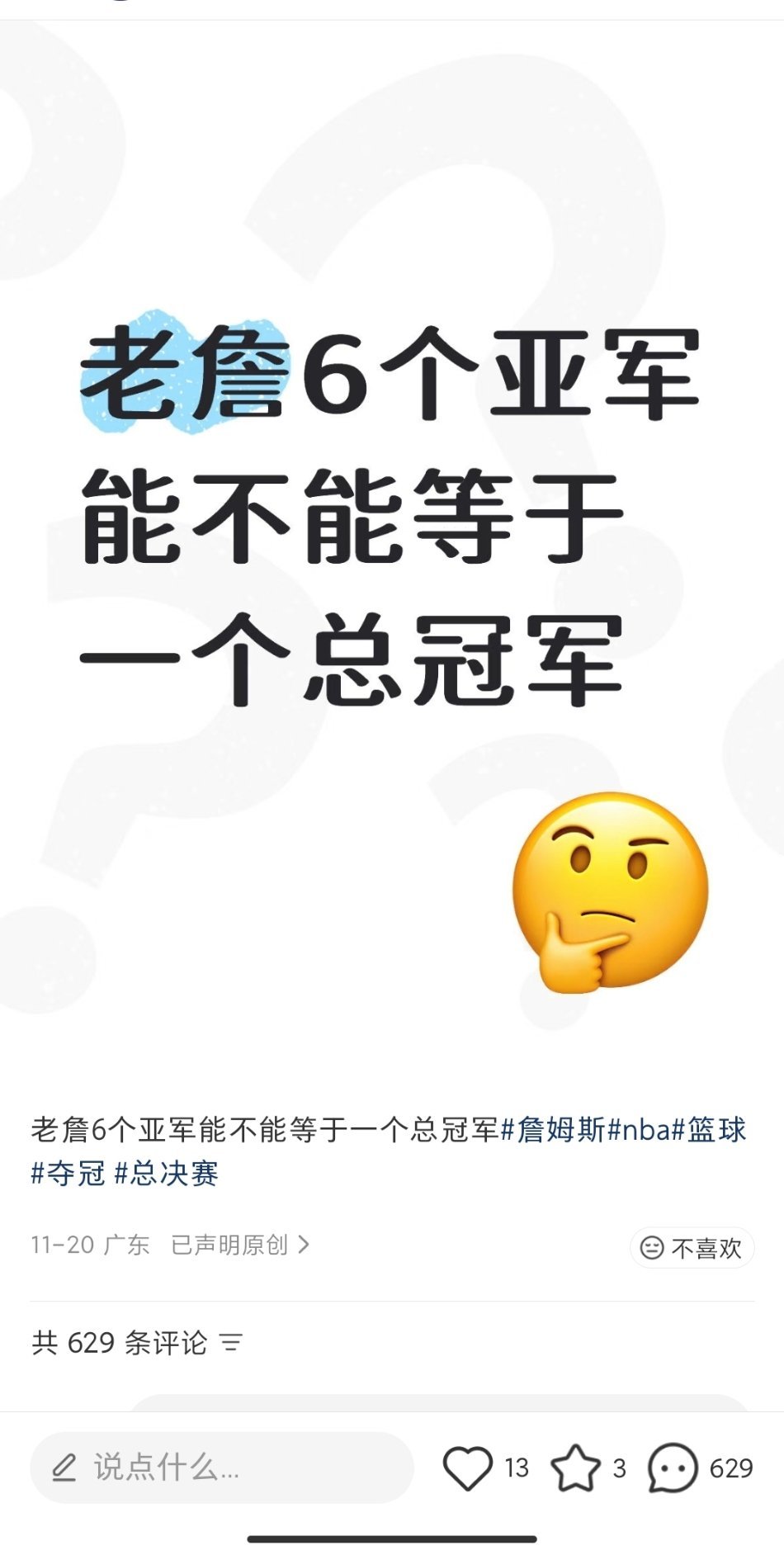 网友问:詹姆斯6个亚军能不能等于一个冠军?